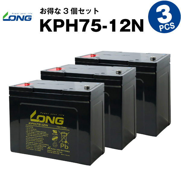 KPH75-12N【3個セット】(産業用鉛蓄電池)【サイクルバッテリー】LONG