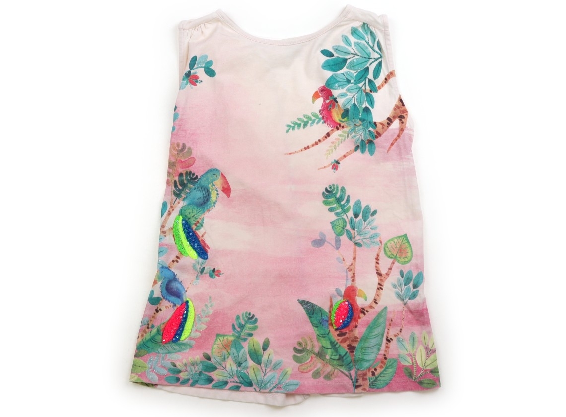 素材タグが切られています。薄手のカットソー素材。。プリント一部ラメ入り。ビーズ装飾あり。全体的に毛羽立ちと色褪せがあります。首元薄っすら汚れあり。ヨレ感がありますが、まだまだお使いいただけそうです。
