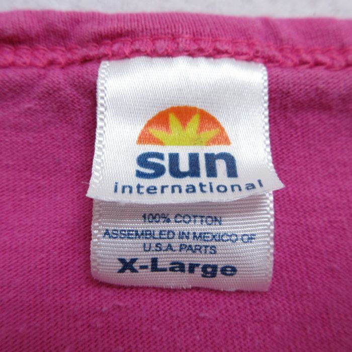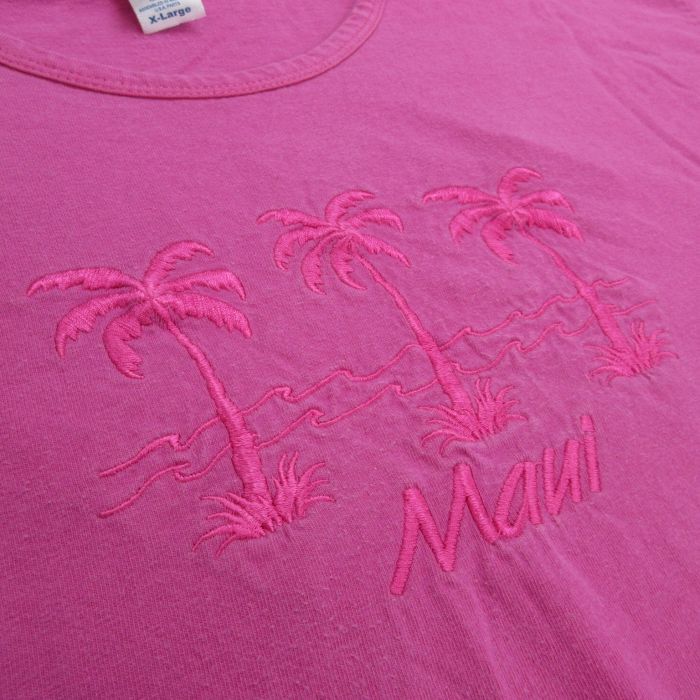 【商品名】 L★古着 半袖 Tシャツ メンズ マウイ 刺繍 コットン クルーネック 濃ピンク