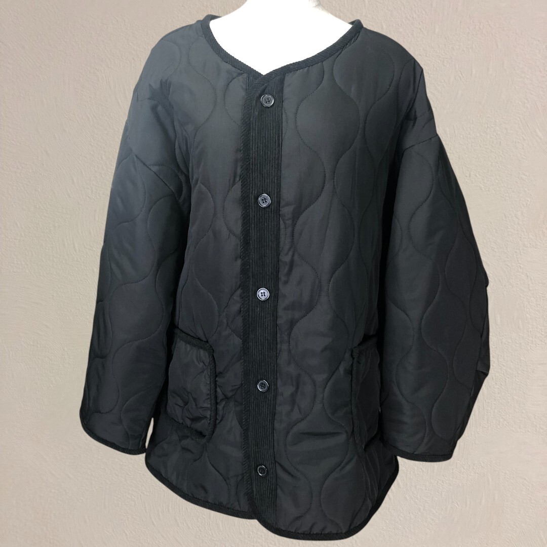 中綿入りで暖かいキルティングジャケット 前開き・ボタン着脱です。