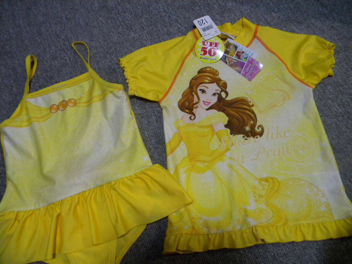 ★即決★ディズニー プリンセス★ベル★水着&ラッシュガード2点セット★120㎝★