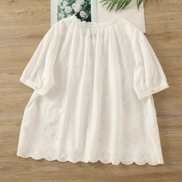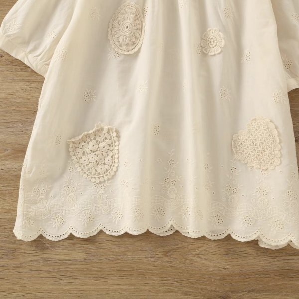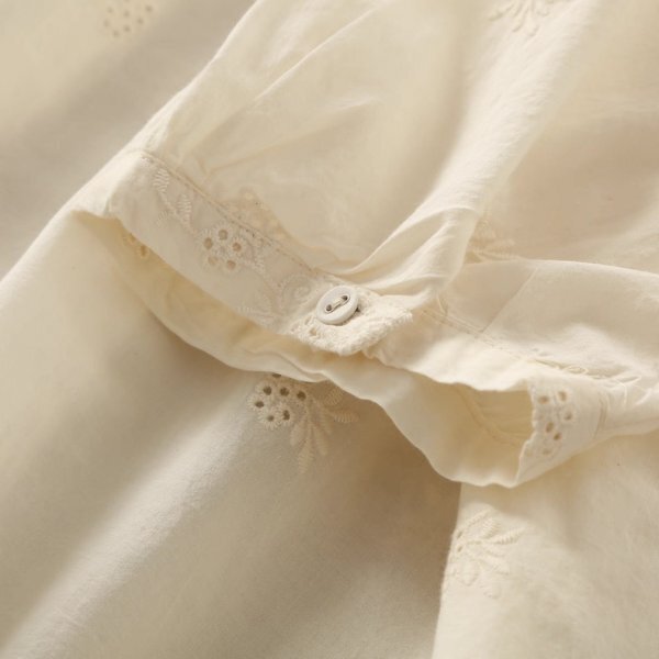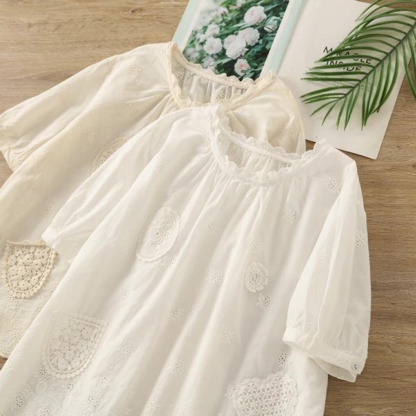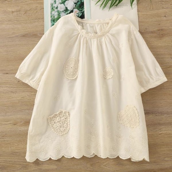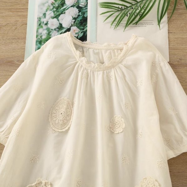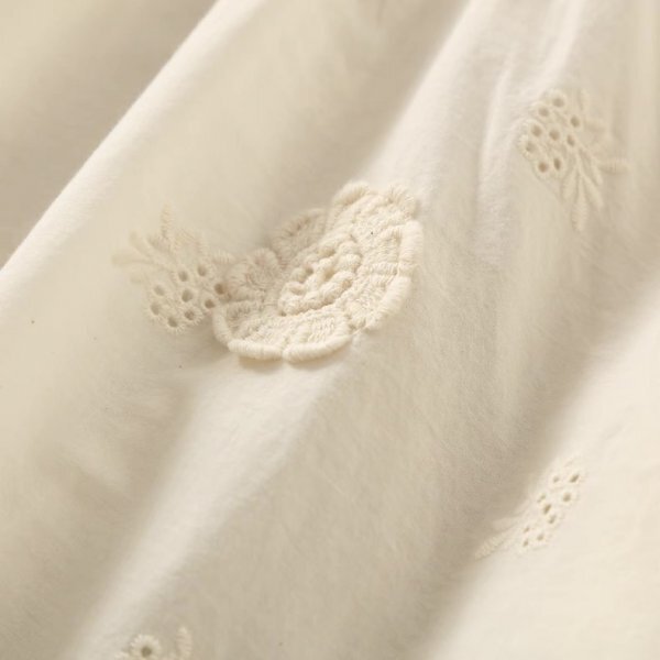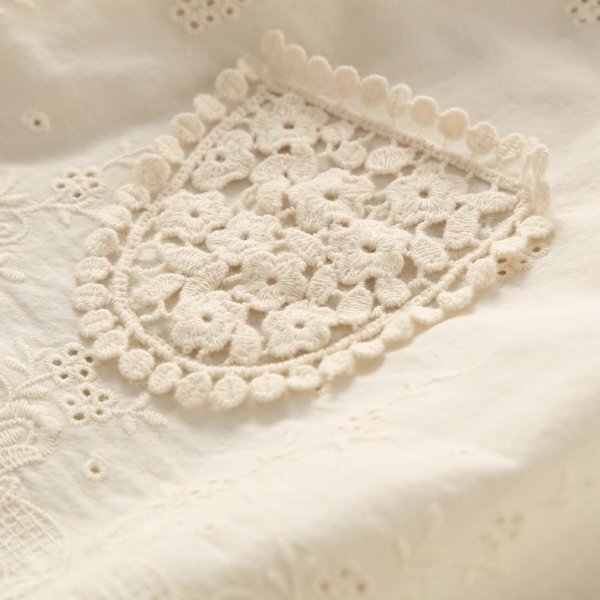 xz 0706 チュニック ワイシャツ トップス 貼り付け花柄 綿100% ゆったり オシャレ フリーサイズ ナチュラル オフホワイト