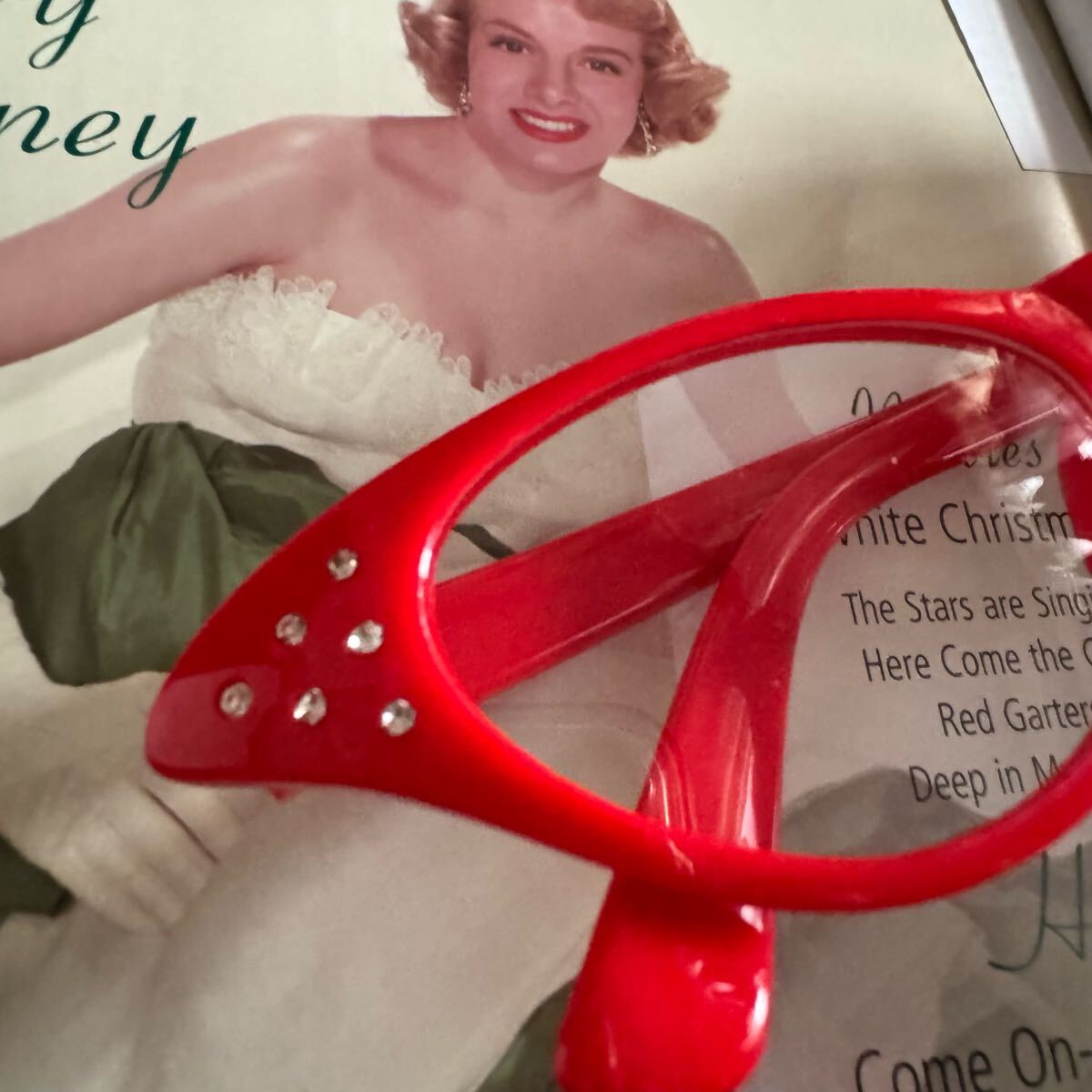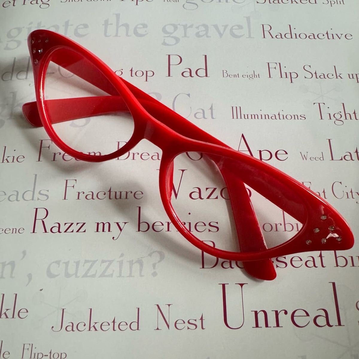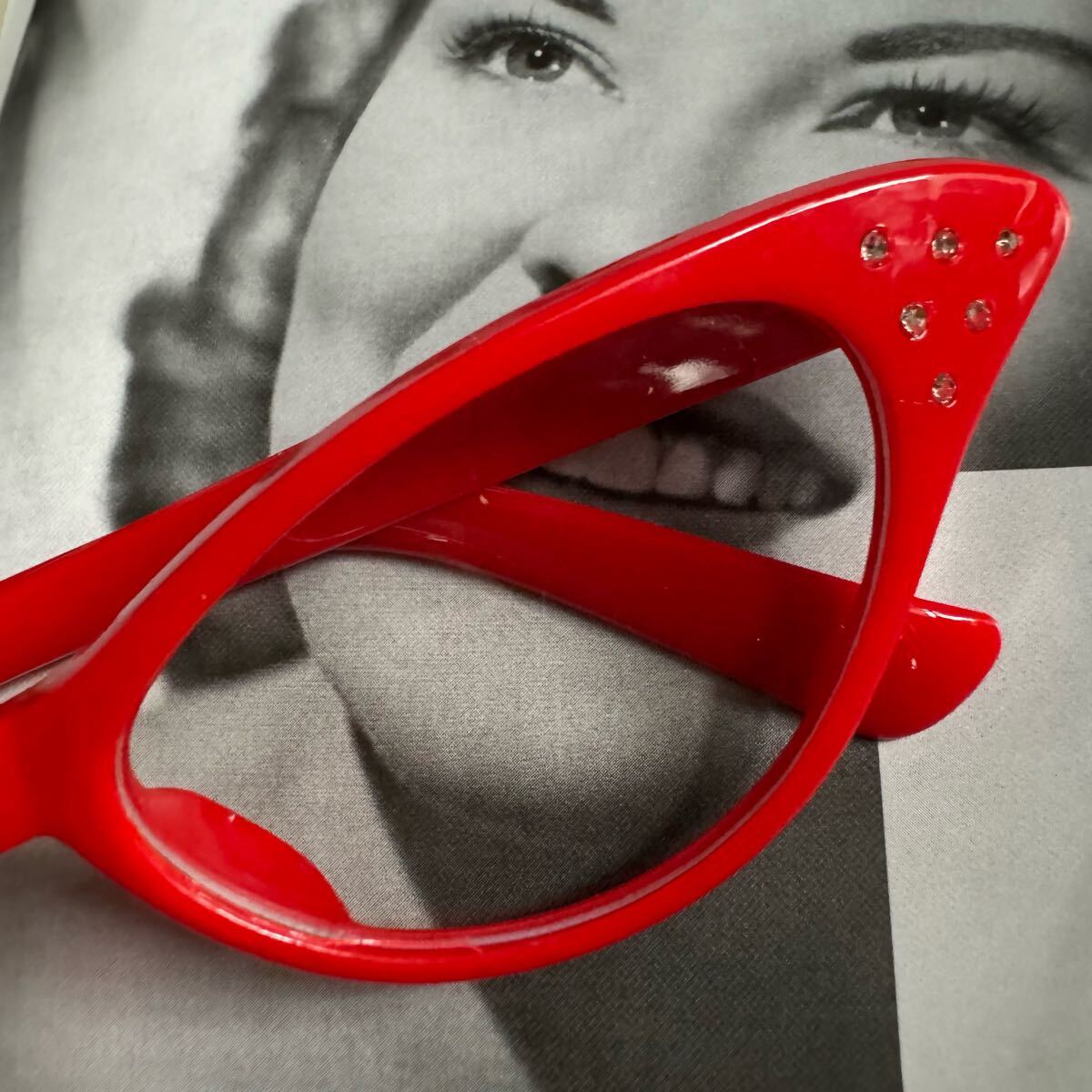 50s.60sビンテージ レトロスタイルにピッタリ合いそうなラインストーン風おしゃれキャットアイ眼鏡メガネです。
