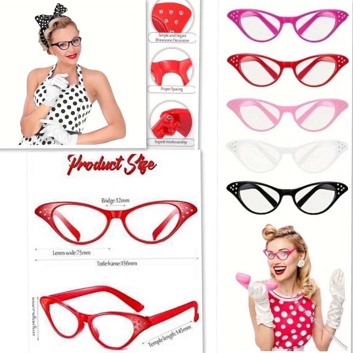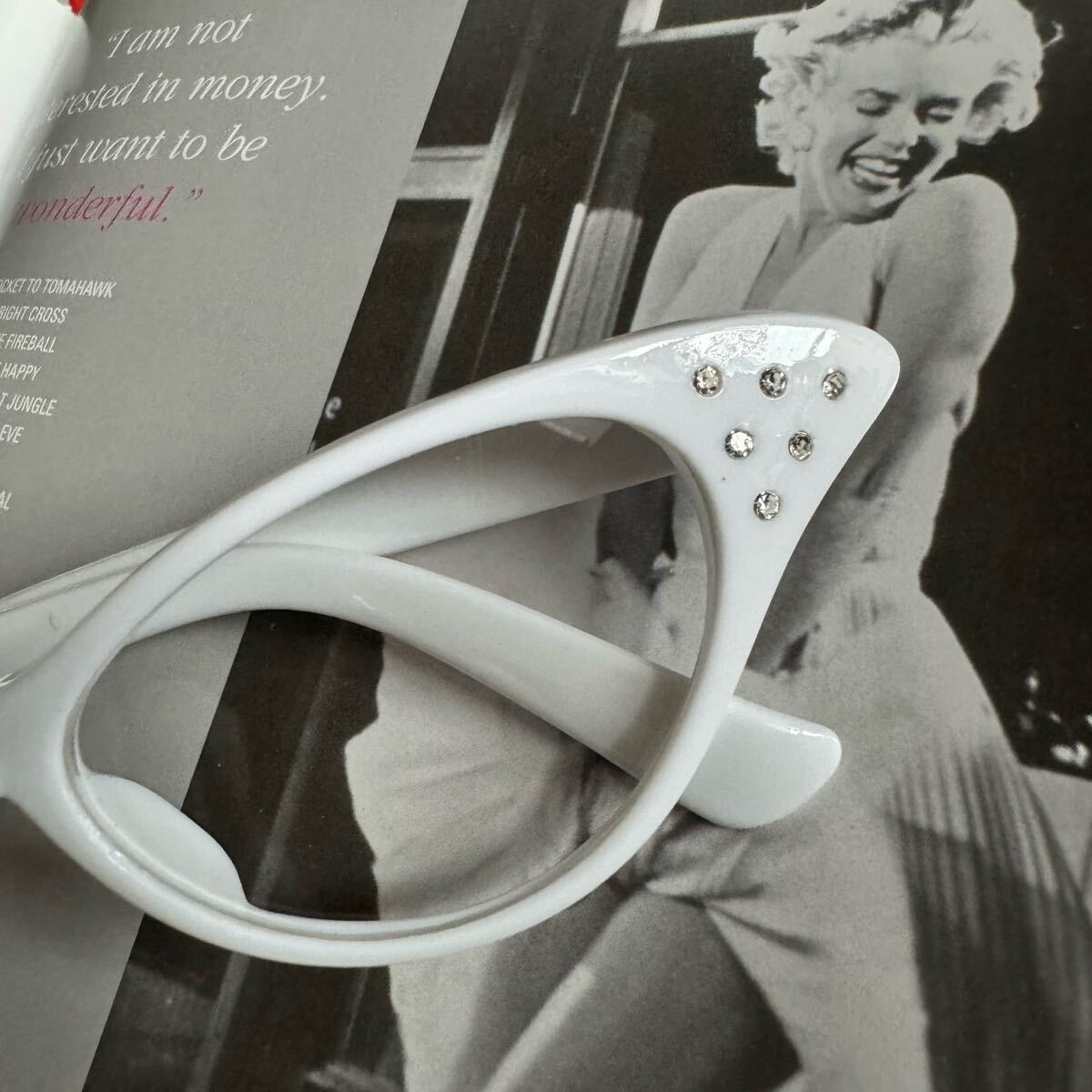 50s.60sビンテージ レトロスタイルにピッタリ合いそうなラインストーン風オシャレキャットアイ眼鏡メガネです。