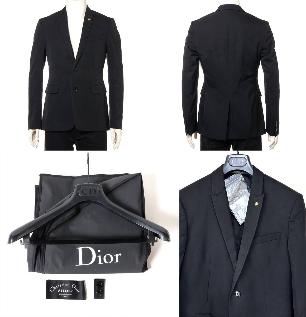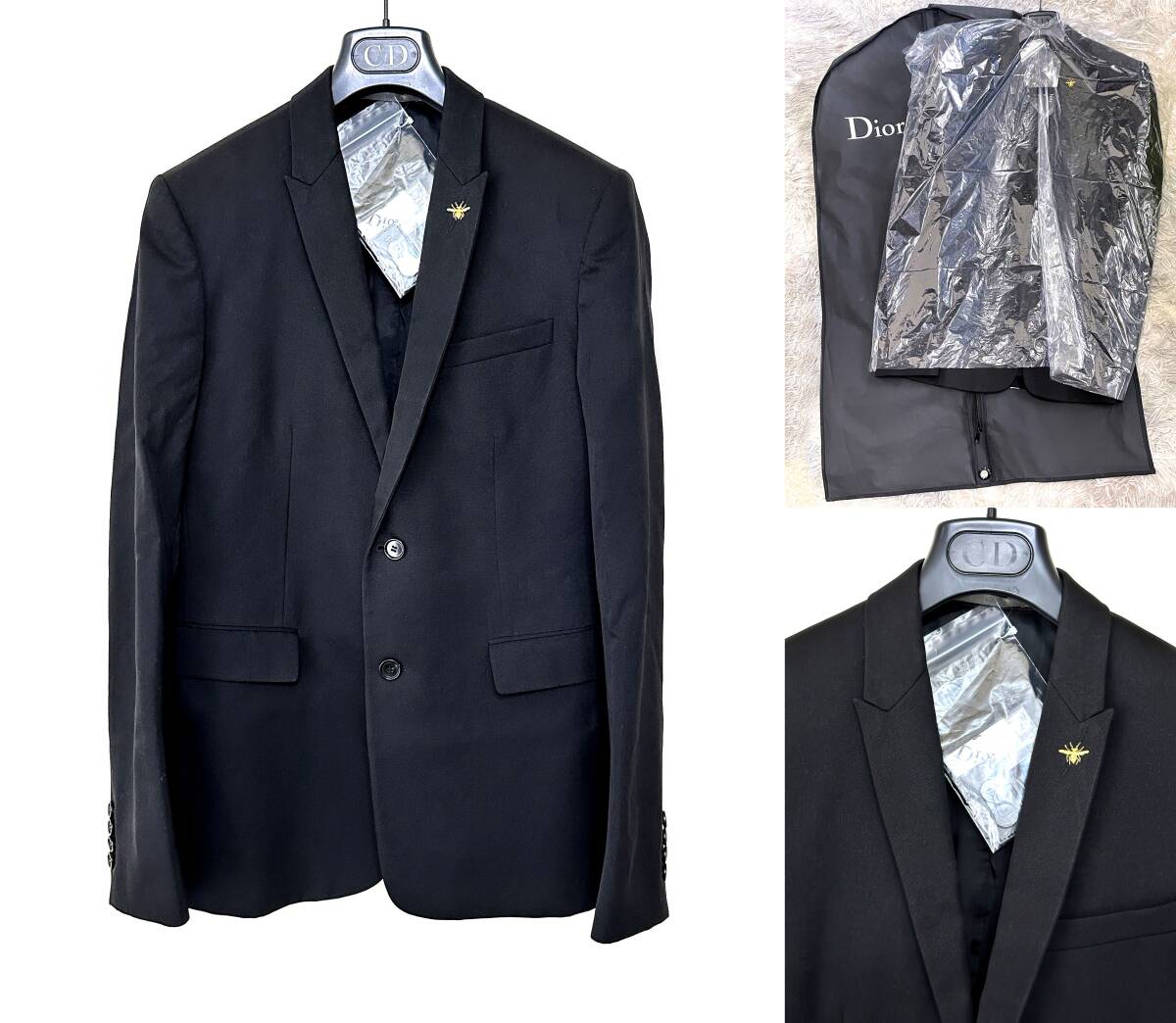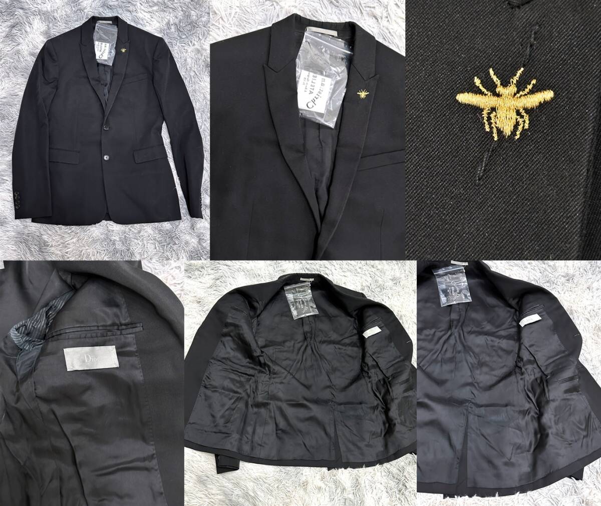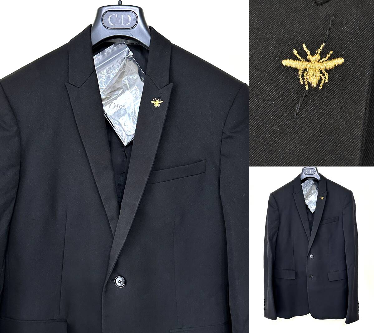 名作 レア 完備品 Dior HOMME ディオールオム クリス期  BEE エンブロイド アトリエ ジャケット テーラード 46 黒 M ロゴ 刺繍