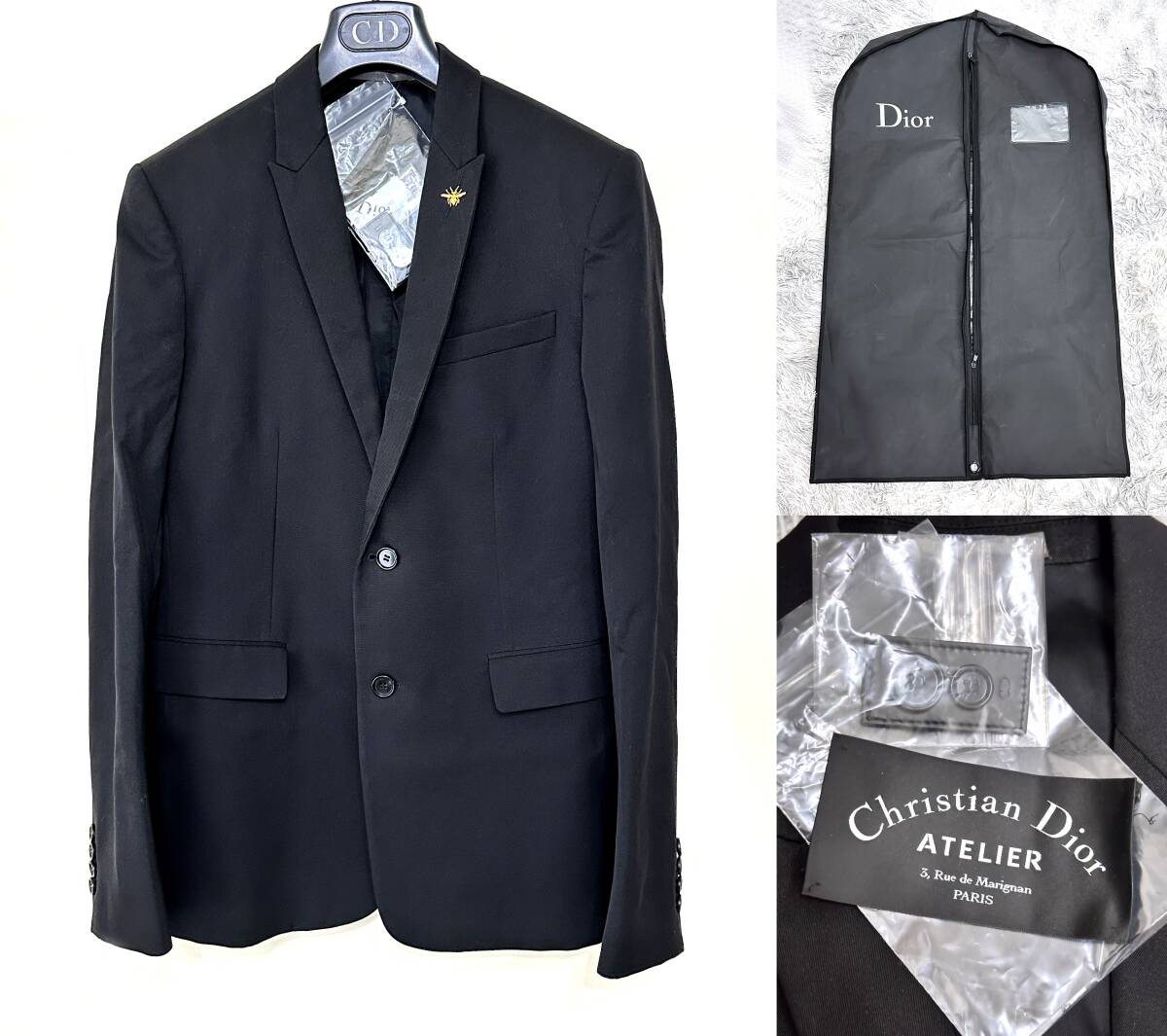 名作 レア 希少 完備品 Dior HOMME ディオールオム クリス期  BEE エンブロイド アトリエ ジャケット テーラード 46 黒 M ロゴ 刺繍