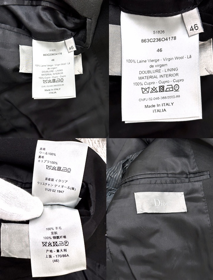 元々中古市場にも流通しないモデルですが、細身のタイトさが売りのディオールオムはSサイズ以降が人気で、特に46サイズは滅多に現れませんのでお探しの方はこの機会にどうぞ。