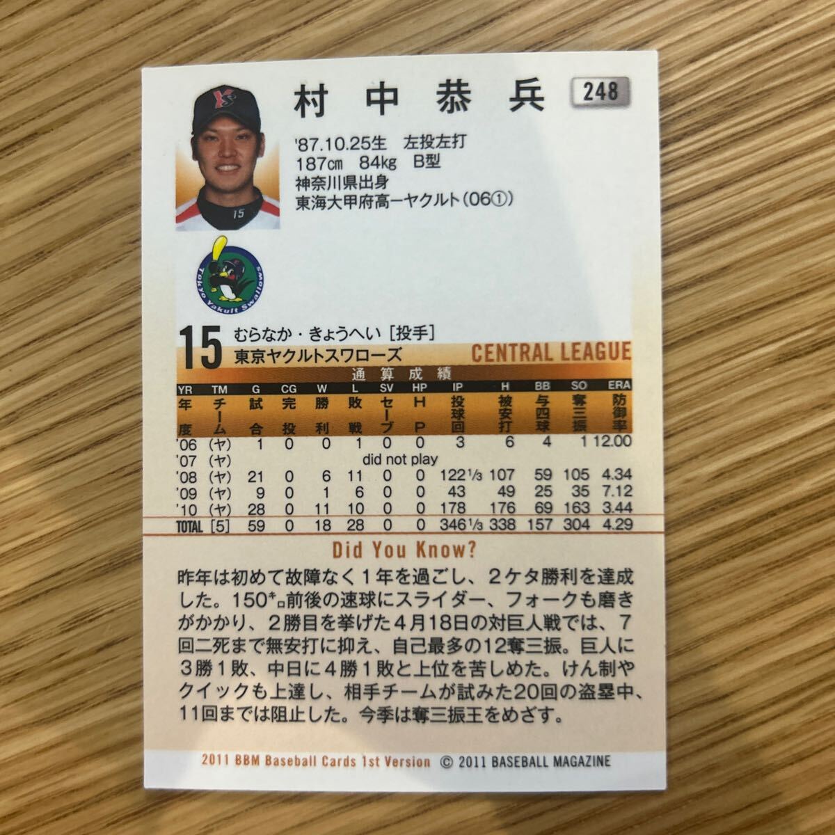 2011BBM 1st 248 村中恭兵 銀箔サインパラレル ヤクルト