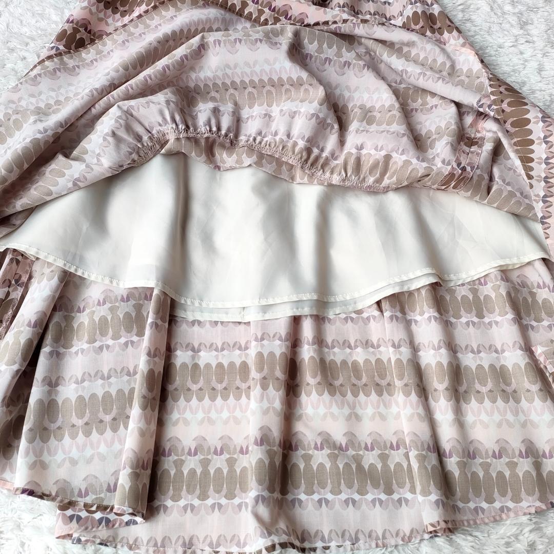 美品 ブルーレーベルクレストブリッジ スケッチプリントティアードマキシスカート 36 S マキシ丈