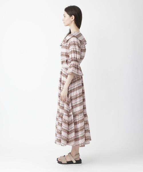 ◆オリジナルプリント柄が主役級のマキシスカートオリジナルプリントがインパクト大のティアードスカートです。ボリューム感やマキシ丈がトレンド感があり、ロング丈で様々な年齢層の方に取り入れやすいアイテムです。シンプルなTシャツにGジャンやマウンテンパーカーなどを羽織らせたカジュアルコーデがおすすめです。