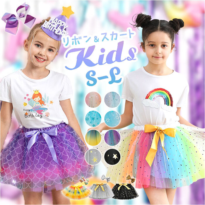 | 商品名 | キッズ チュチュ スカート パニエ カラフル ふわふわ リボン付き |