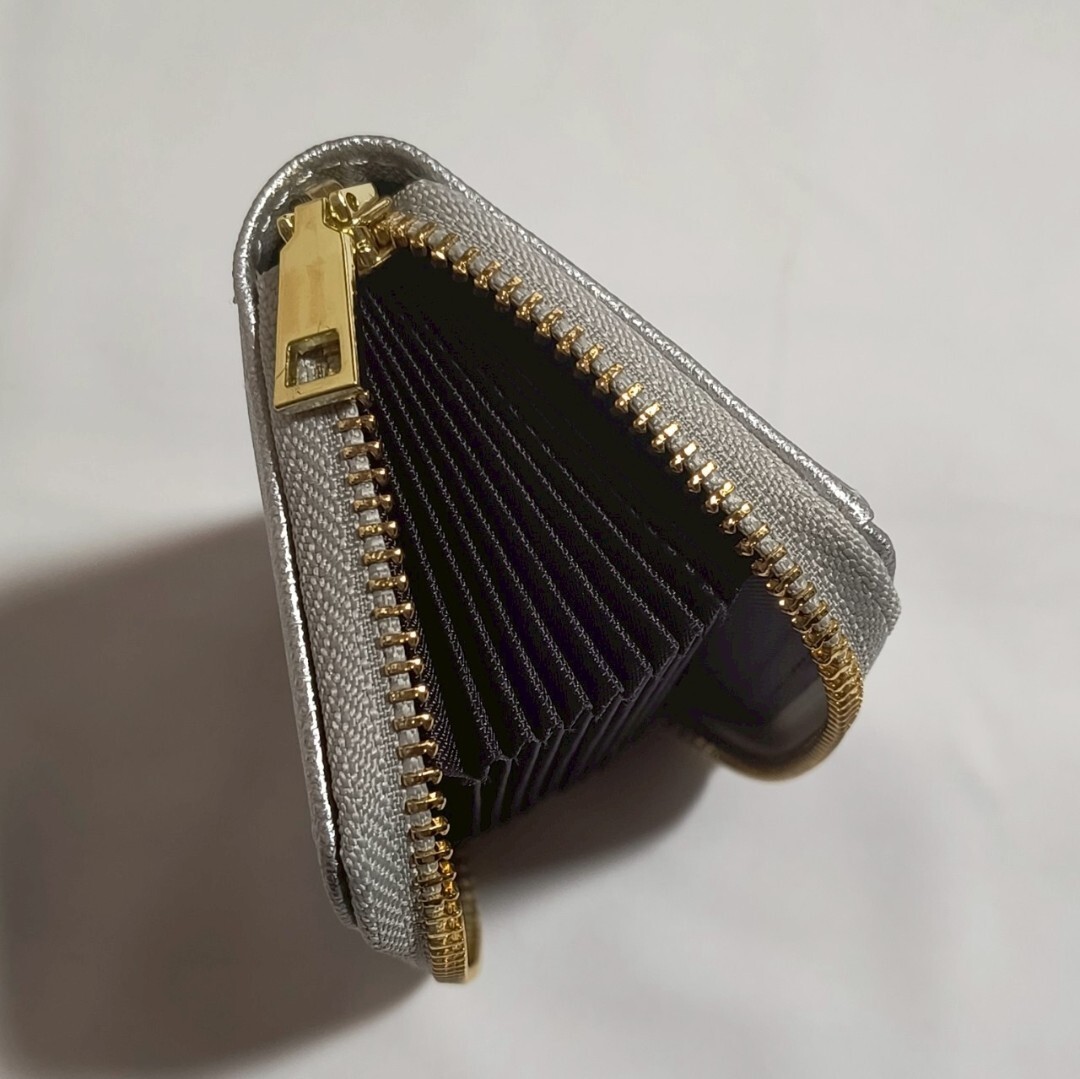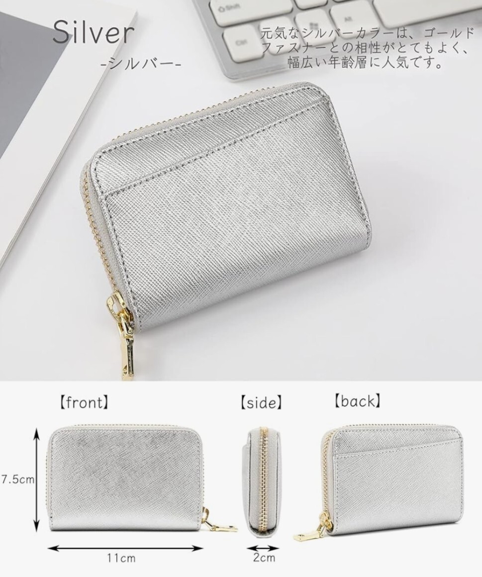 【商品仕様】横11cm×縦7.5cm×幅2cm /重さ110g/全12ポケット(内側11ポケット+外ポケット)/素材:本革サフィアーノレザー/YKKゴールドファスナー/(内側)磁気遮断、スキミング防止素材使用/外側ポケット:ICカード読み取り可/