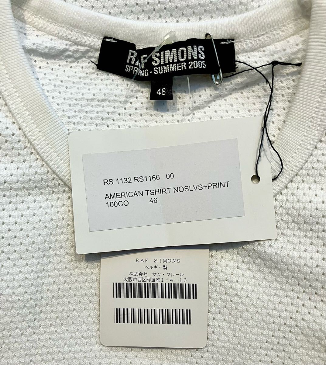 国内正規 新品 05ss Archive Raf Simons ラフシモンズ メッシュ スリーブレス Tシャツ バスケタンクトップ 白×黒 TEXAS PIECES メンズ 46