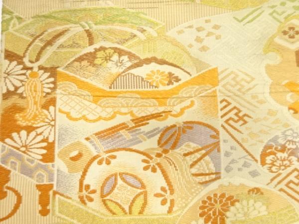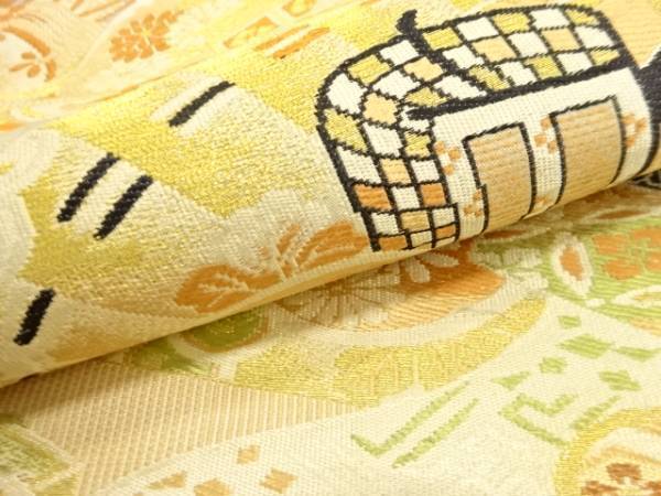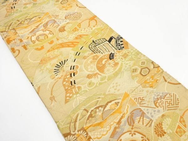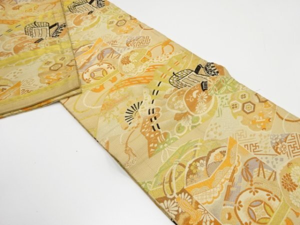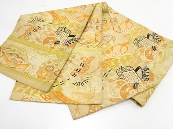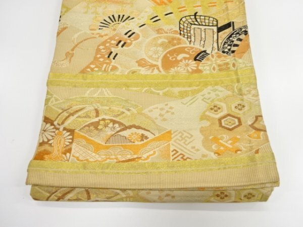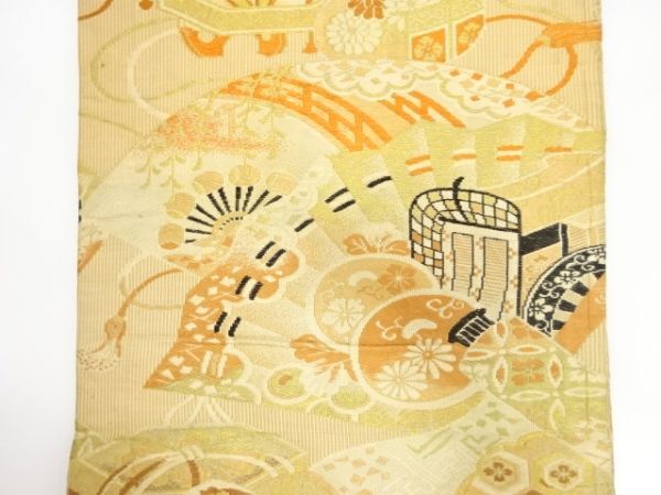 ys7417698; 扇に貝桶・御所車模様織り出し丸帯(材料)【アンティーク】【着】