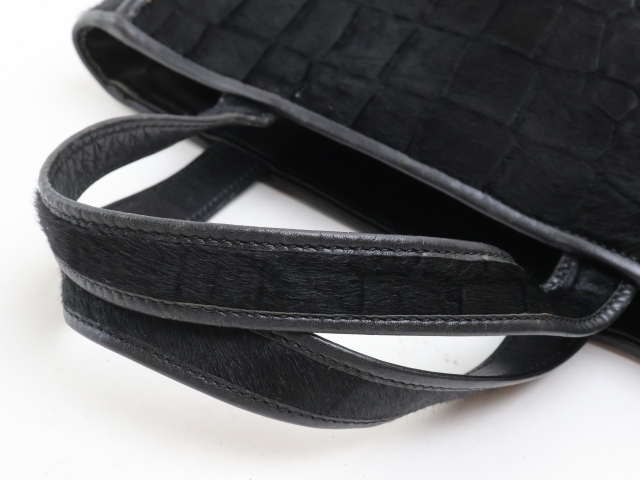 2506-9 和光 ワコー ハンドバッグ WAKO ハラコ×レザー製 ブラック | |