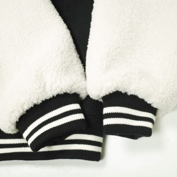 メインファブリックにはウールをスリーブは切替でボアを使用しています。