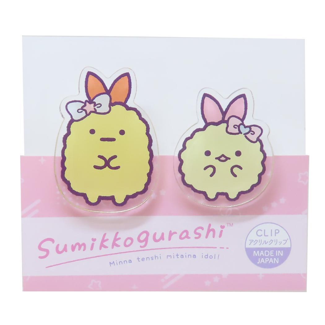 すみっコぐらし クリップ アクリルクリップ2個セット 天使なえびてんアイドル サンエックス ナガノファクトリー 事務用品 書類整理