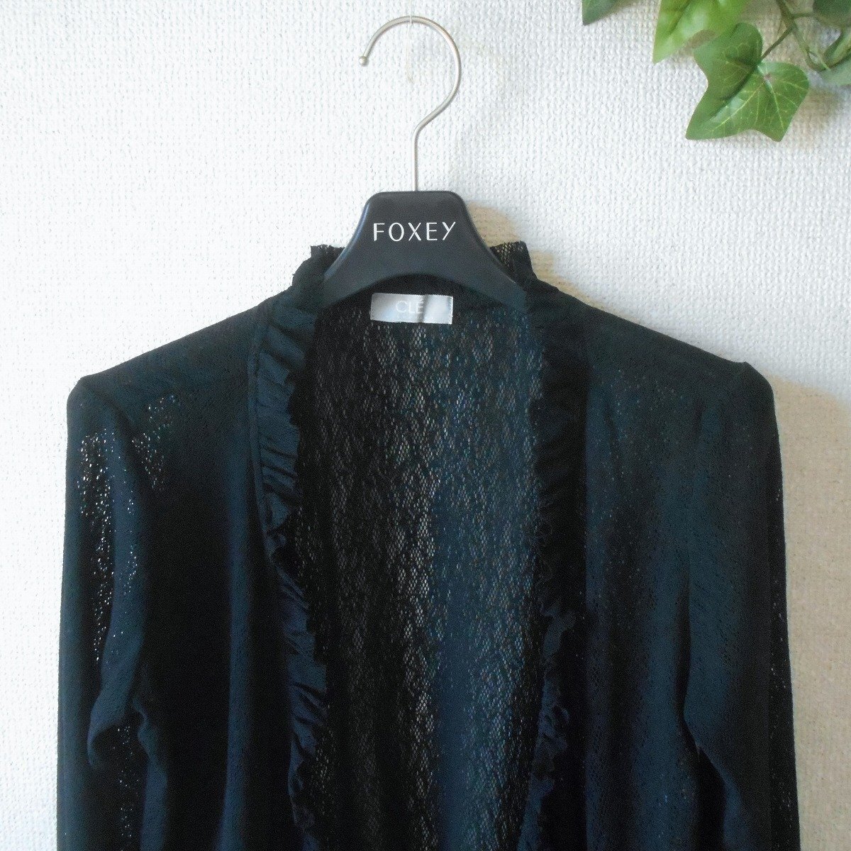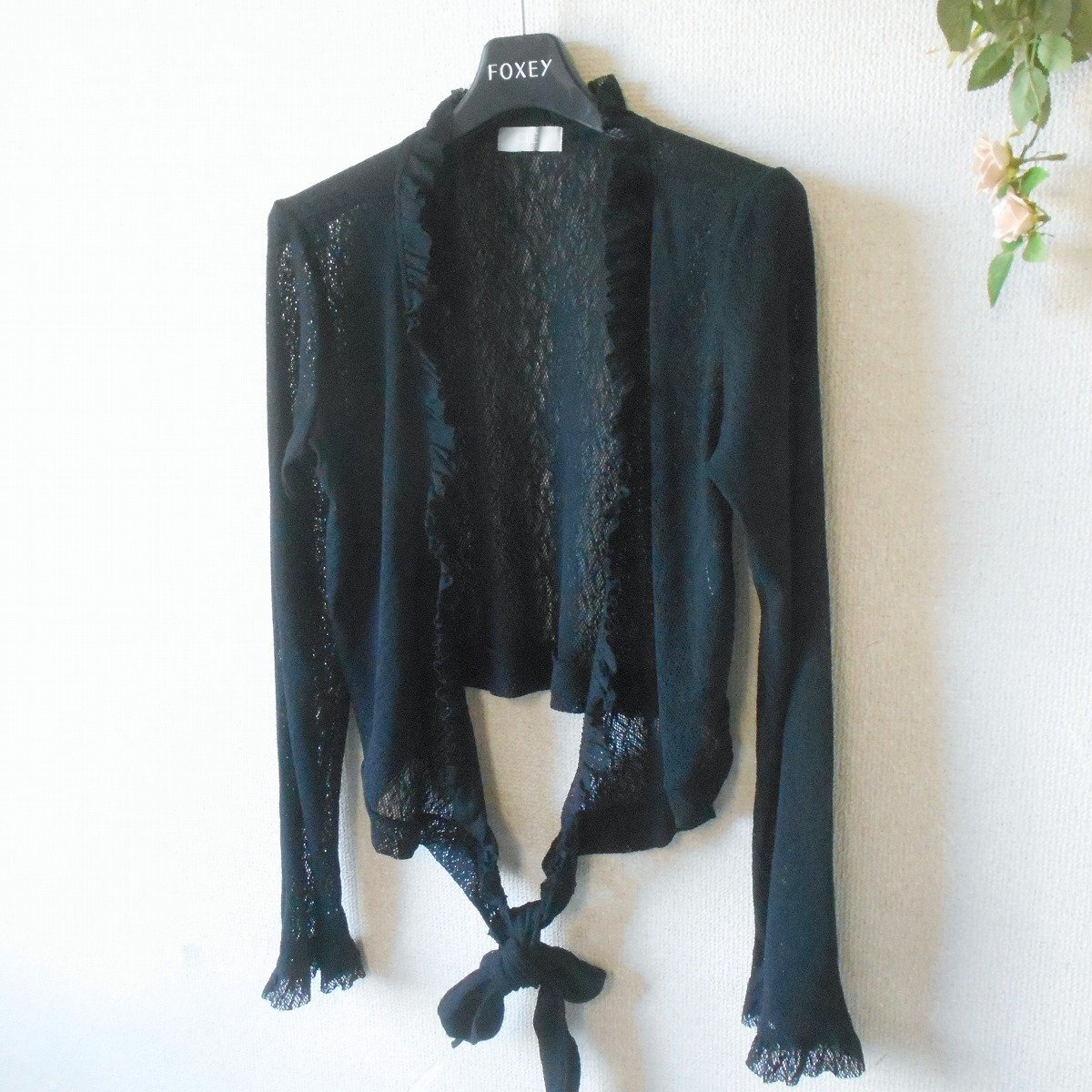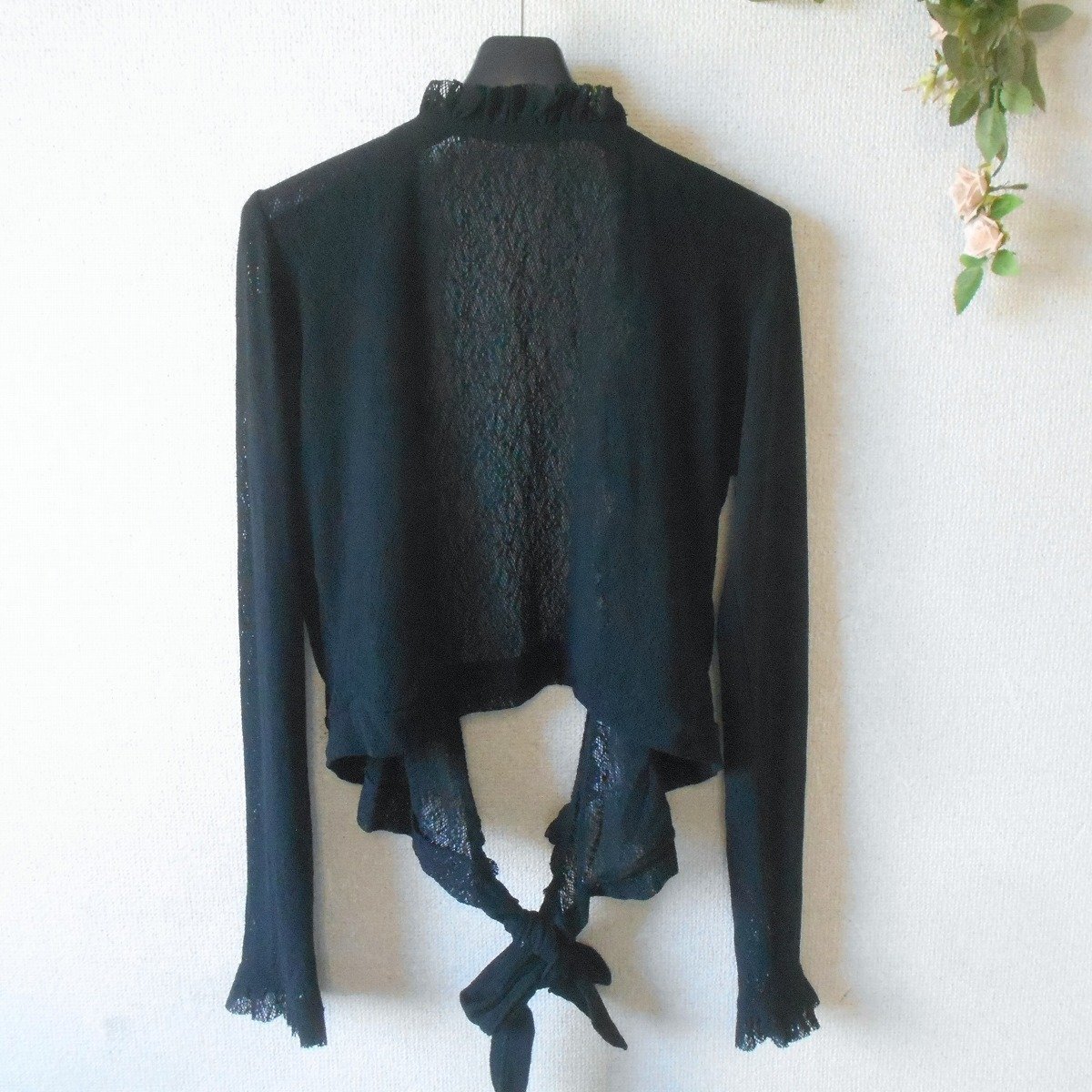 【ポイント】HAGISHIMA.CO LTD,クレのレディース用カーディガンになります。お色は黒色で薄手の春夏向きです。前はボタンやフック等はなく、羽織っていただいて、裾でリボンを結んでいただく、とっても可愛いデザインです。