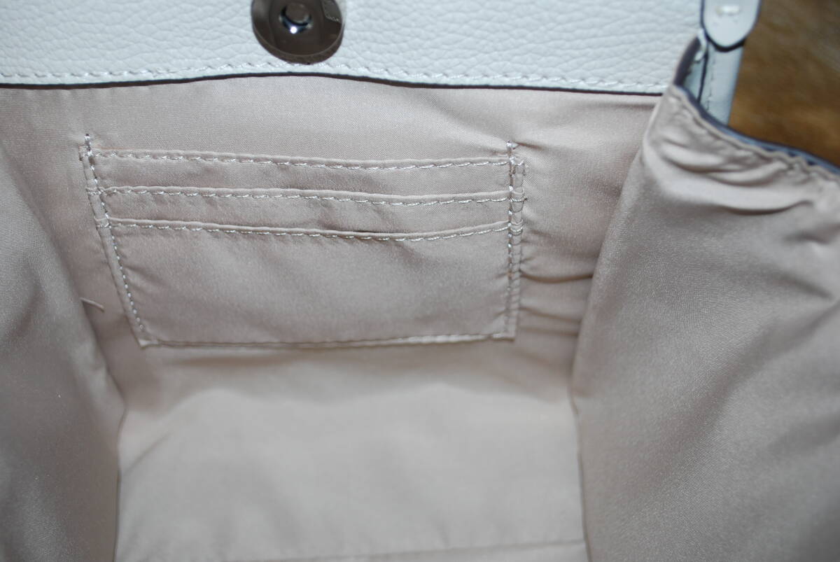 写真のものが全てのNINE WEST革ショルダーバッグです。展示未使用品ですので、内外装ともに傷やほつれ、擦れ、汚れなど無い、ピッカピカのバッグです♪サイズは、W18.5×H16×D9センチ(素人採寸)で、上部のマグネットボタンを開けると内部にはファスナーポケット1つと小さなオープンポケット3つが付いています。持ち手は約22センチ、着脱自在のショルダーストラップの長さは約110センチあり、5つのピン穴で調整出来ます。格安出品のこの機会にピッカピカのNINE WEST革ショルダーバッグをお一ついかがでしょうか♪♪画像を良く御覧の上、ノークレームノーリターンでよろしくお願いいたします。