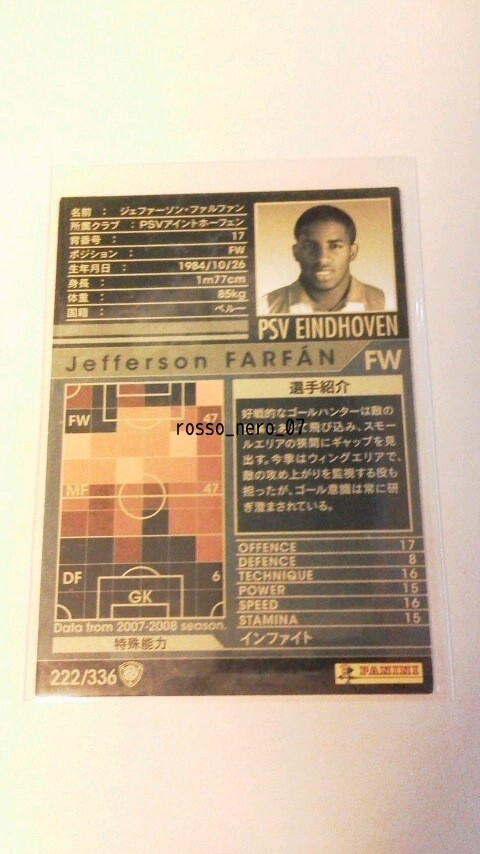 ☆WCCF2007-2008☆07-08☆222☆白☆ジェファーソン・ファルファン☆PSVアイントホーフェン☆Jefferson Farfan☆PSV Eindhoven☆