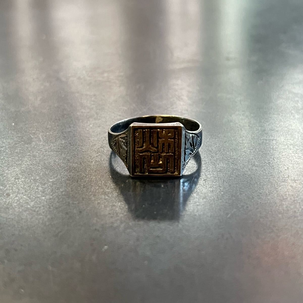 海外で買い付けたオールド・漢字エングレービングデザインのシルバーリングです。