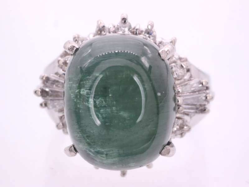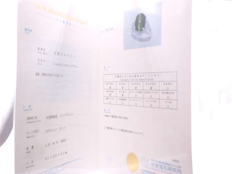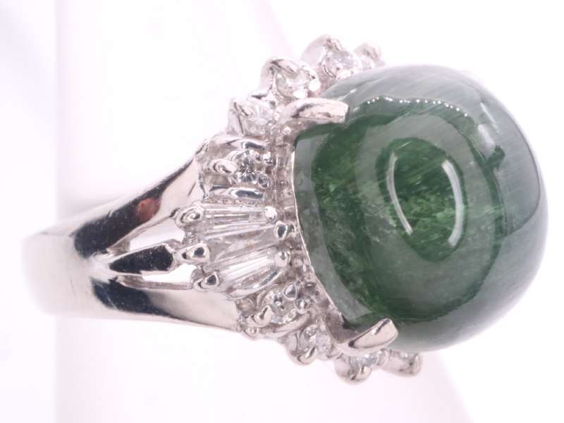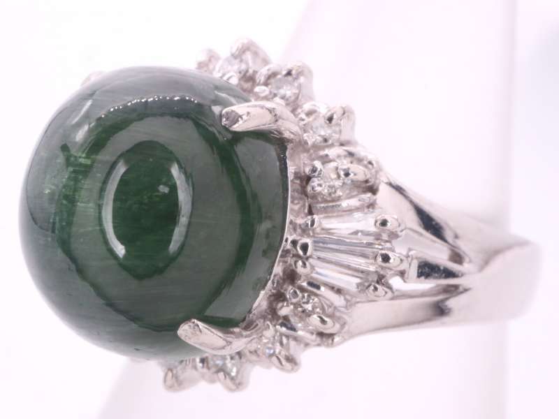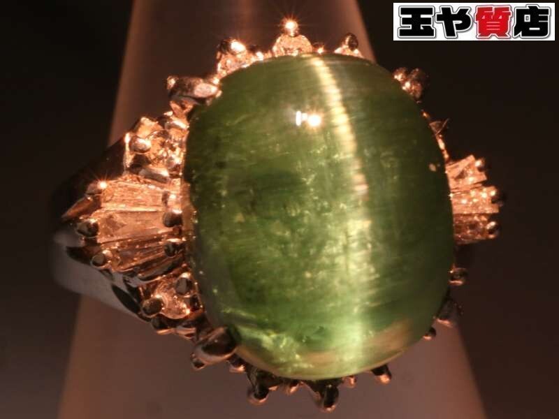 トルマリンキャッツアイ4.29ct ダイヤ0.18ct デザインリング8号 pt900 プラチナ 鑑別書付