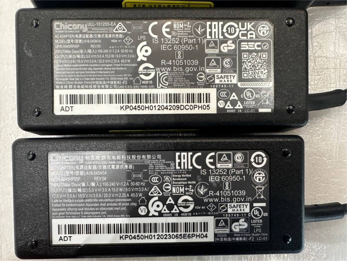 Chicony製 Type-C 45W ACアダプタ 学校用 Chromebook、Lenovoなどに対応 45W タブレット スマホ 10個セット 送料無料