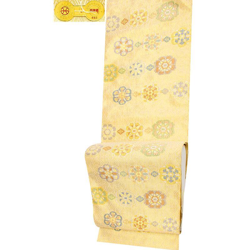 | ★品質・詳細 | ○地色 【こちらの地色は古典の白金地系です。】 ○絹織物 ○新品・未仕立の唐織九寸なごや帯です。 ○西陣名門橋本テル織物謹製 【証紙番号 602】 ○長さ 約3.8m ○参考上代 128,000円 |