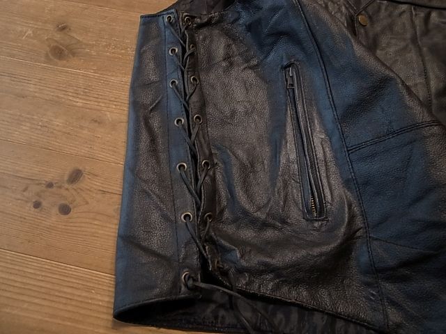◆ブランド 「GENUINE LEATHER」 アメリカ古着 ●サイズ表記 56 実寸サイズ 7XL(8L)相当 肩幅…44cm(肩先から肩先の間の長さ) 身幅…72cm(両脇を横直線に結んだ長さ) 着丈…68cm(後衿ぐり中央から後身頃裾) ※平置き状態での素人採寸ですので、多少の誤差はご了承ください。 ●素材…GENUINE LEATHER ●色…黒 ●ポケット…スラッシュジップポケット フラップレスポケット ●製造国表記…なし ●状態…多少の使用感はございますが状態良好です。 ★送料 全国一律 700円 佐川急便 (北海道900円 沖縄その他離島1700円) ※複数ご購入の場合、同梱発送可能です。 |