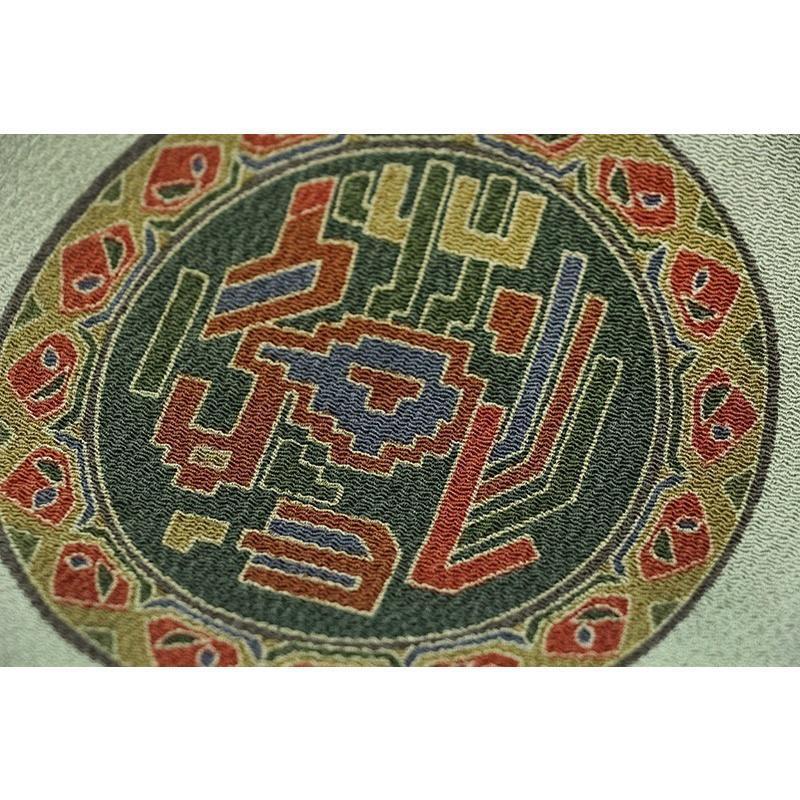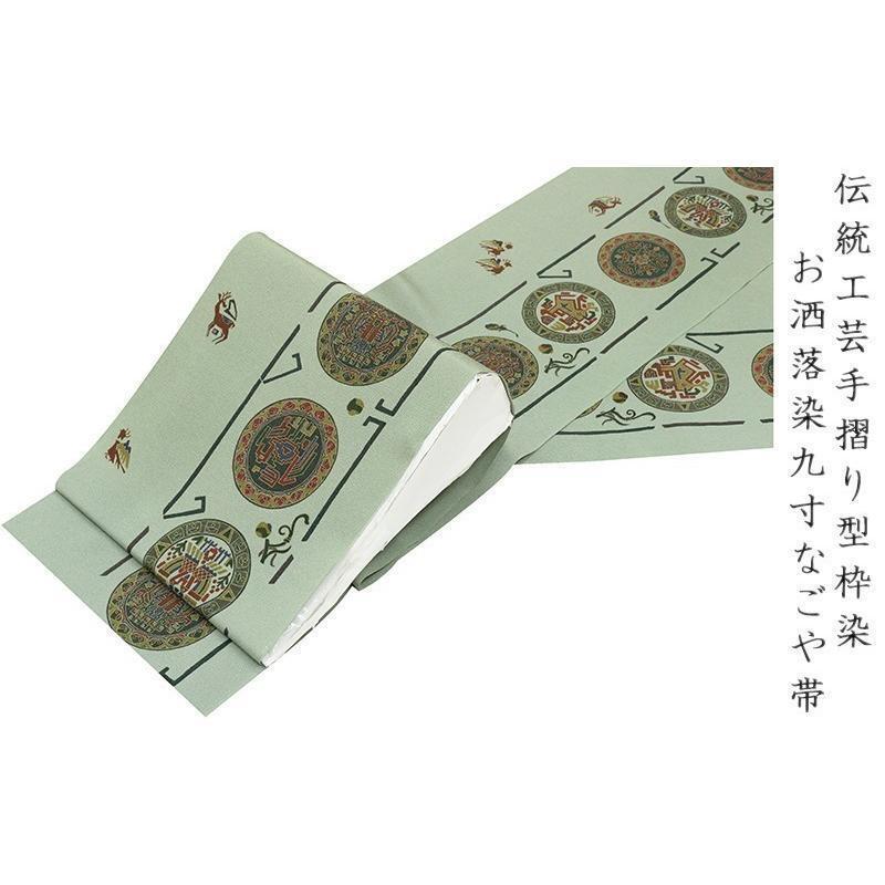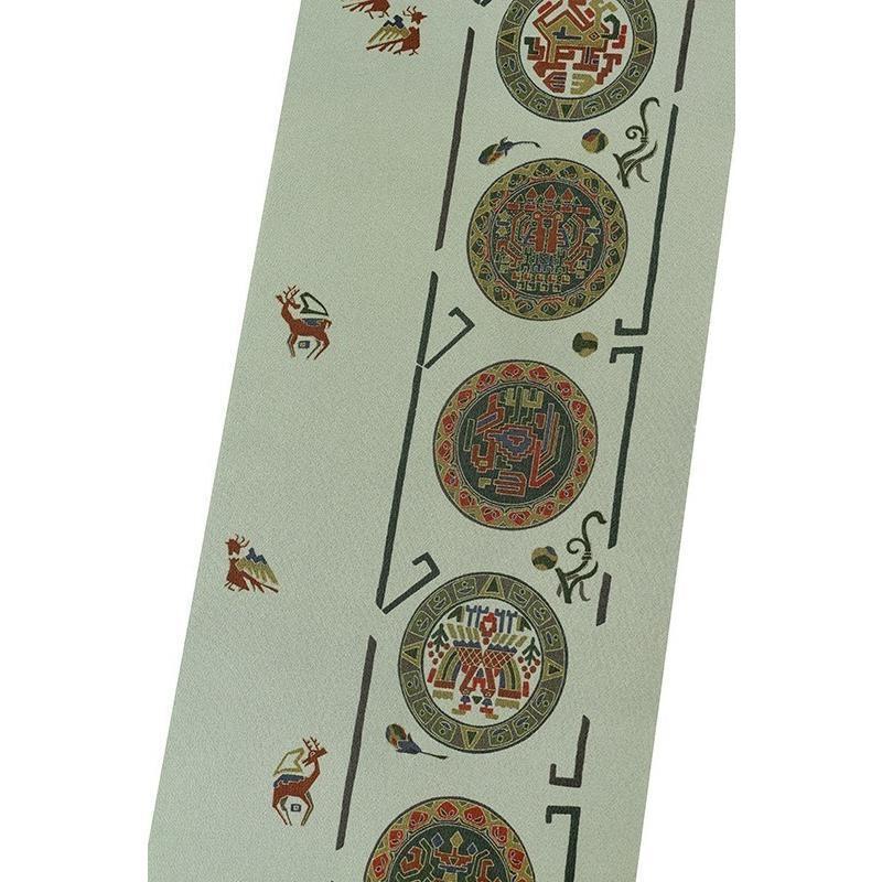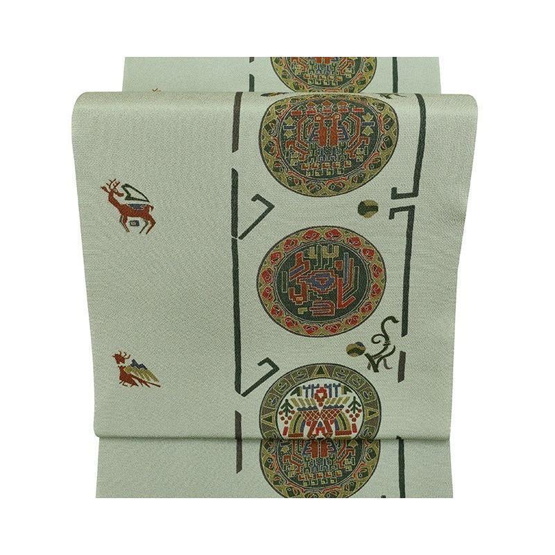 | ※記念感謝祭【仕立無料】工芸手摺り型枠染ちりめんトール生地九寸なごや帯☆古代壁画文様 |