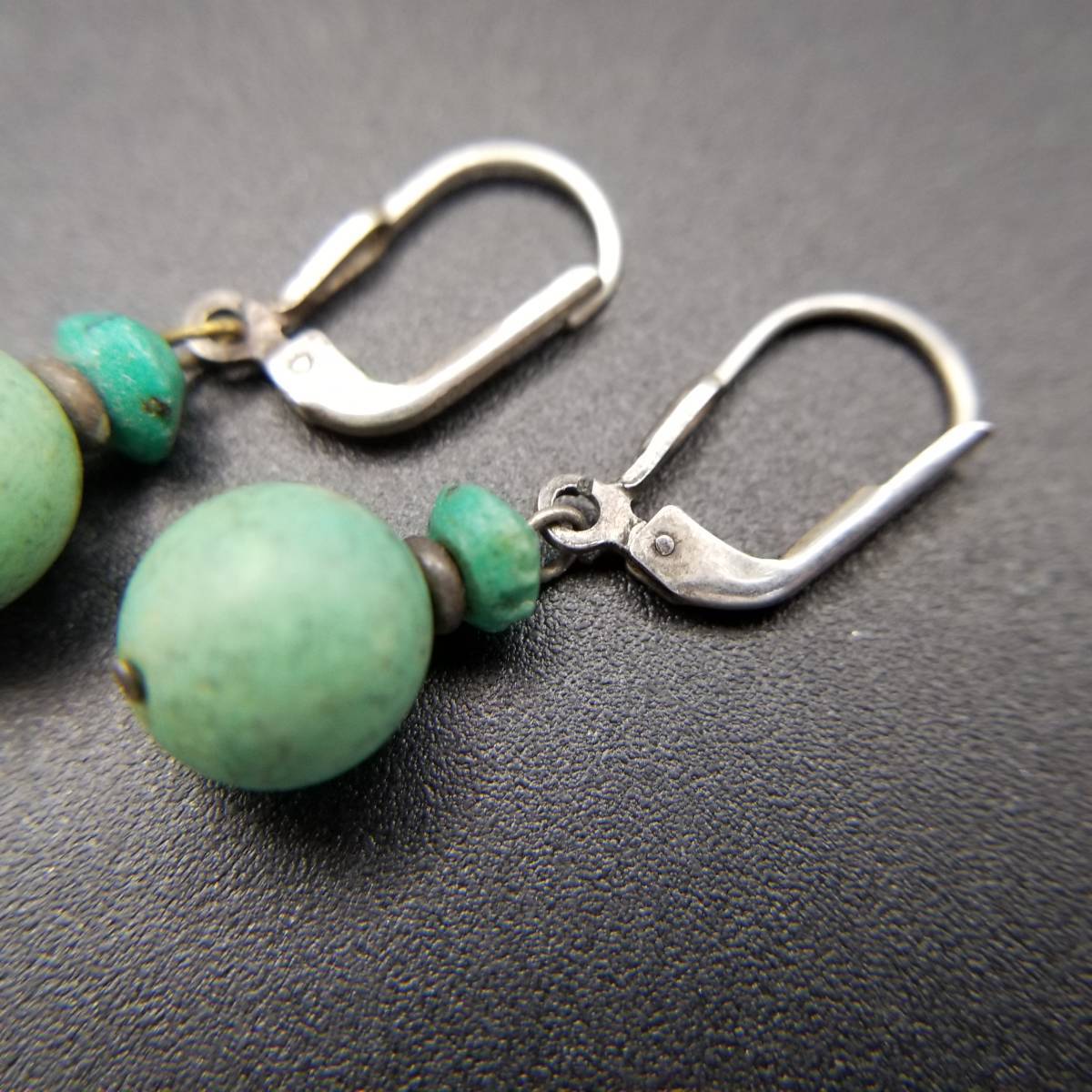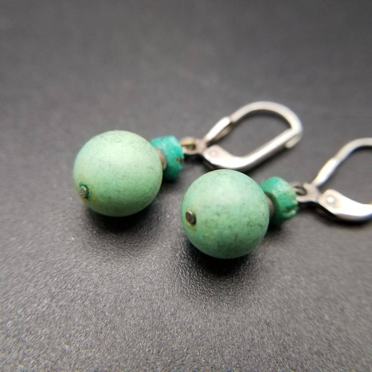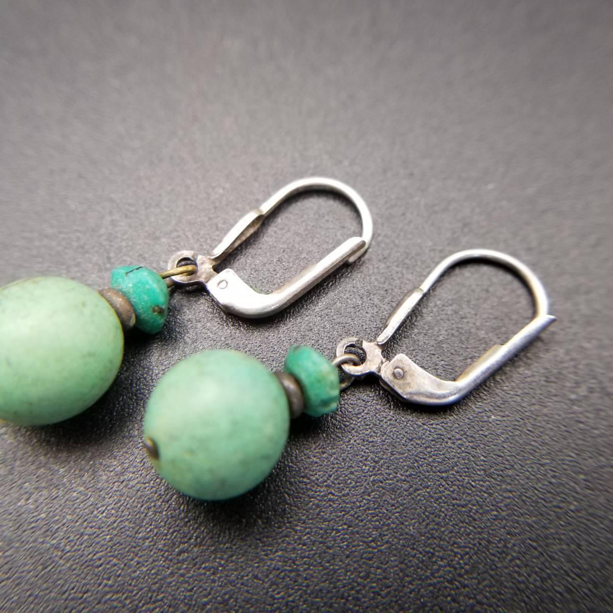 サウスウェスタンジュエリー ハウライト ビーズ 玉 925 シルバー ヴィンテージ ピアス 銀 イヤリング グリーン系 エスニック 7Y-B