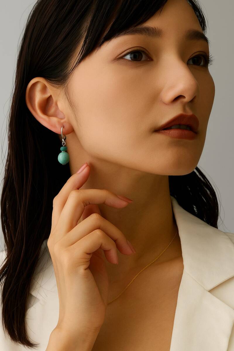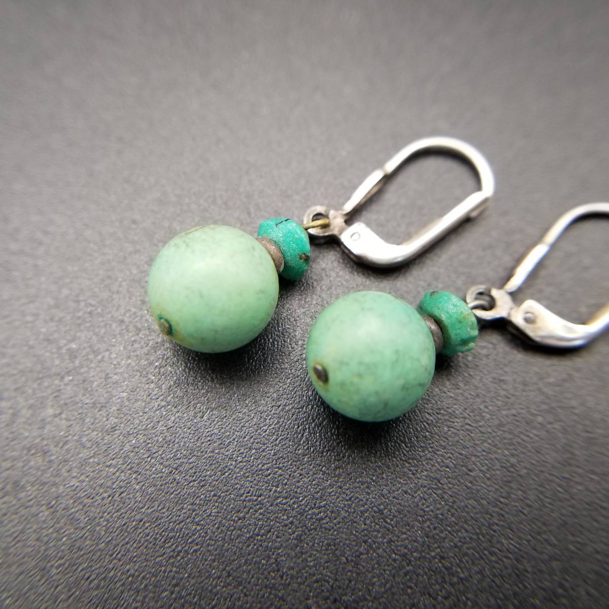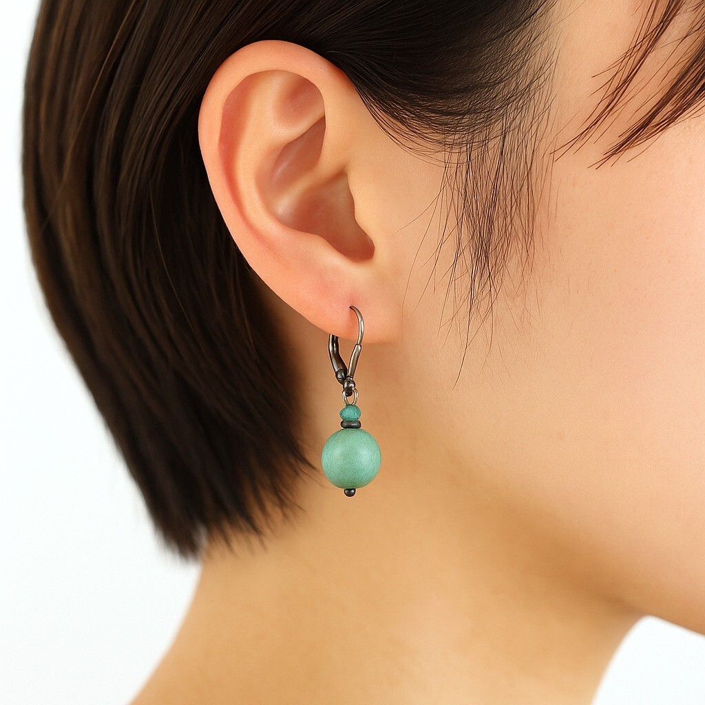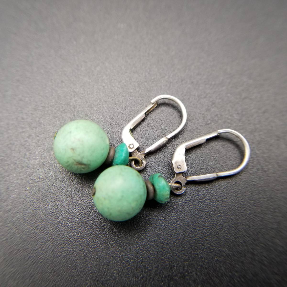 サウスウェスタンジュエリー ハウライト ビーズ 玉 925 シルバー ヴィンテージ ピアス 銀 イヤリング グリーン系 エスニック 7Y-B