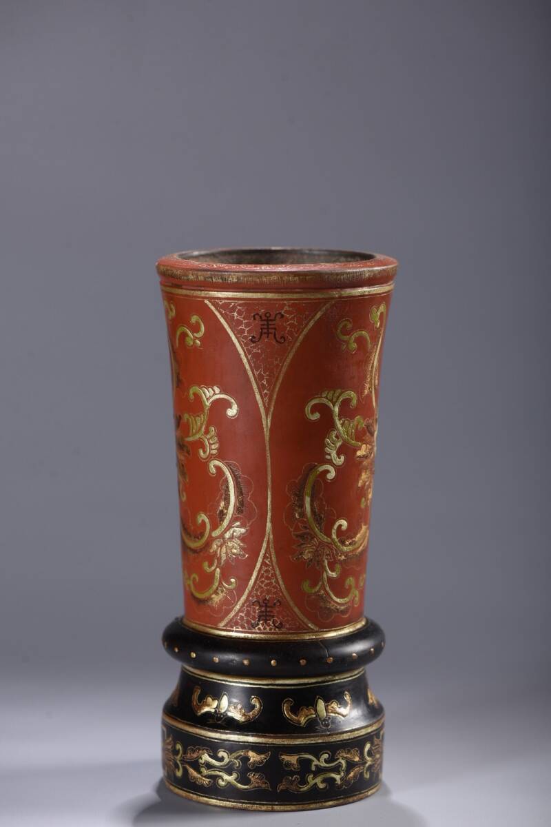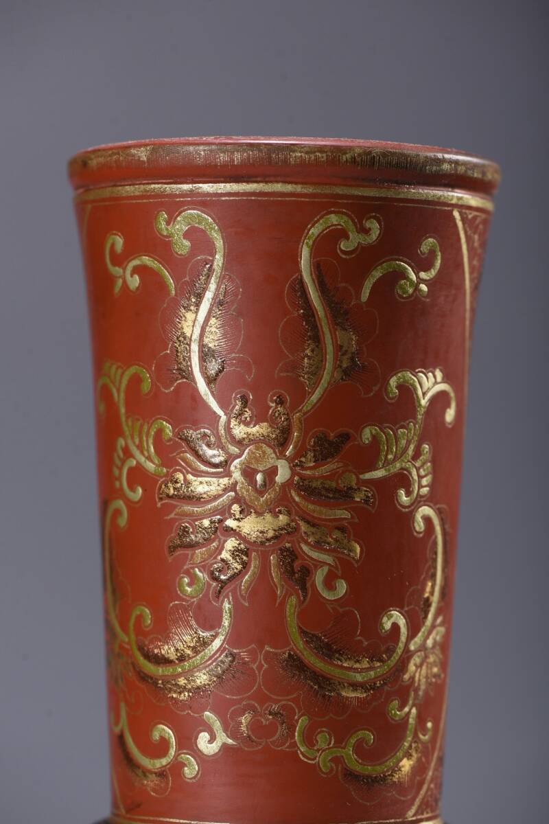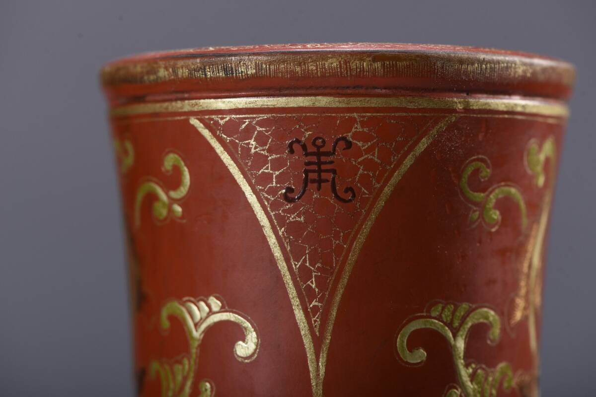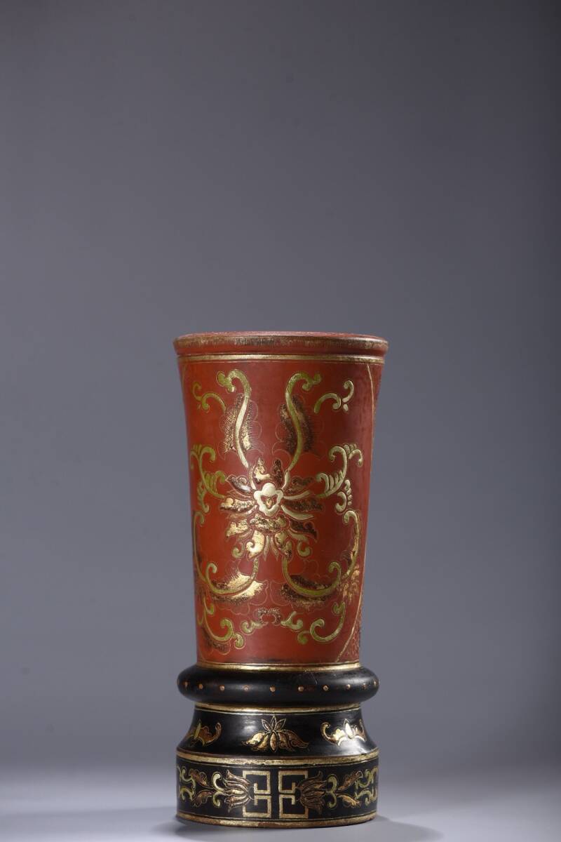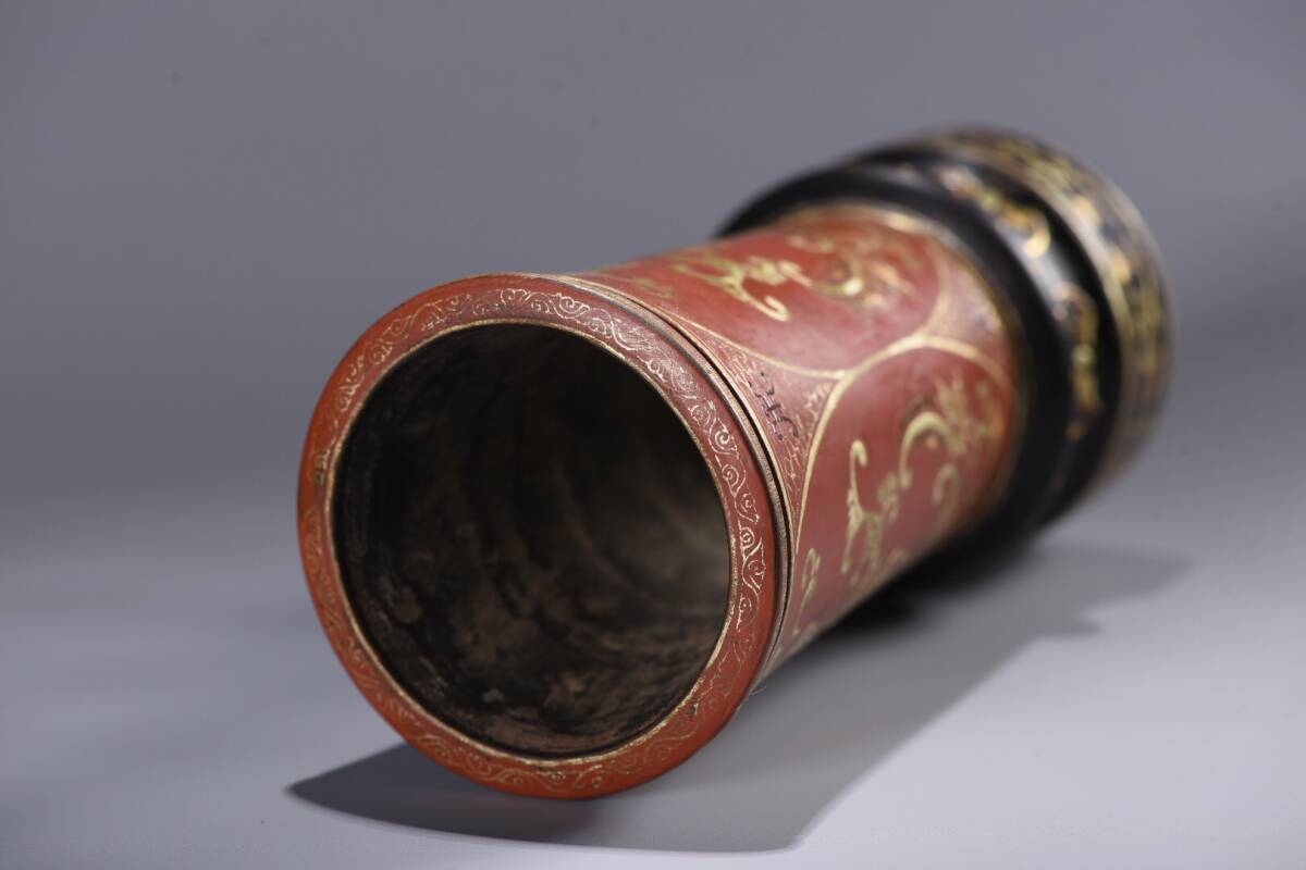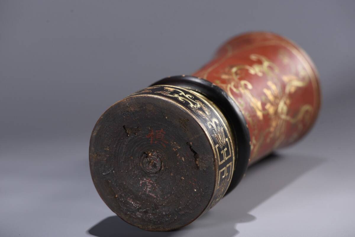 | 【蔵友館蔵品・木胎漆器彫・描真金・纏枝花卉紋・筆筒・置物・賞物】・古董品・中国古玩・時代物・希少珍品・中国時代美術 |