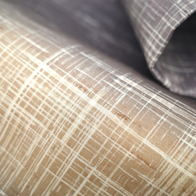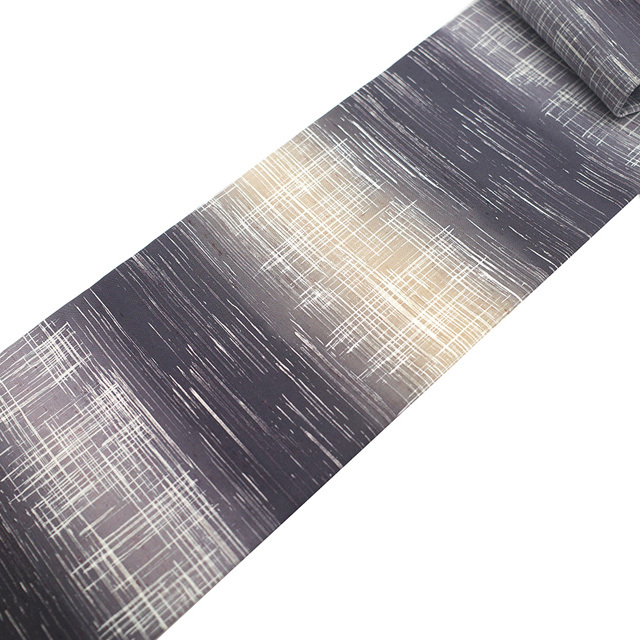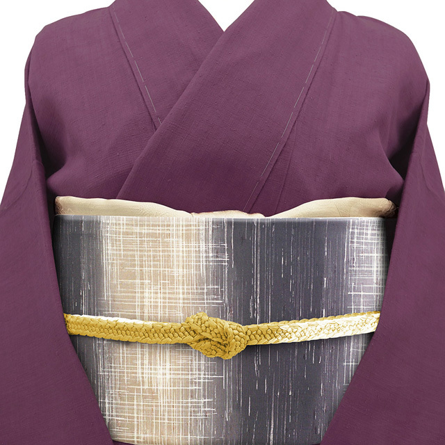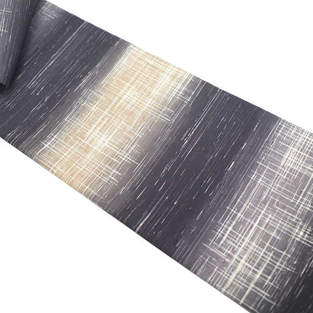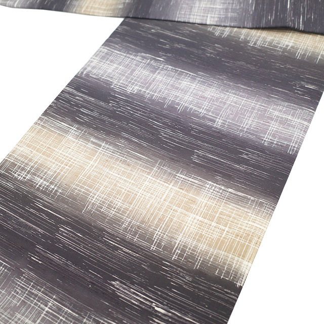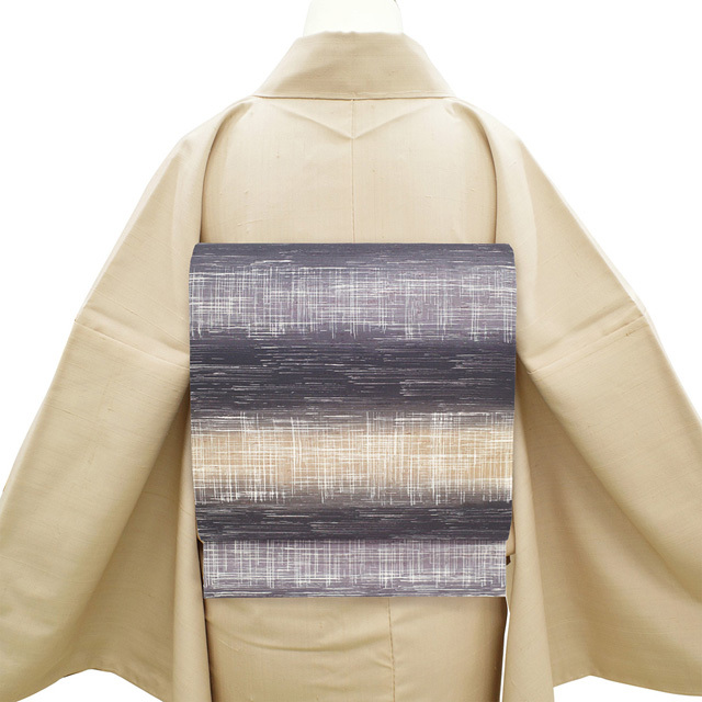 こちらのお品は 濃紫・紫グレー・淡茶ベージュ で霞横段文が染められています。