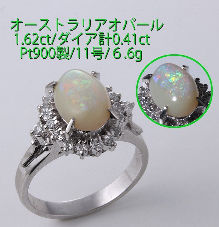 マテリアル | オーストラリアオパール1.62カラット(カラット刻印あり)、天然ダイア合計0.41カラット(カラット刻印あり)、プラチナ900製 |