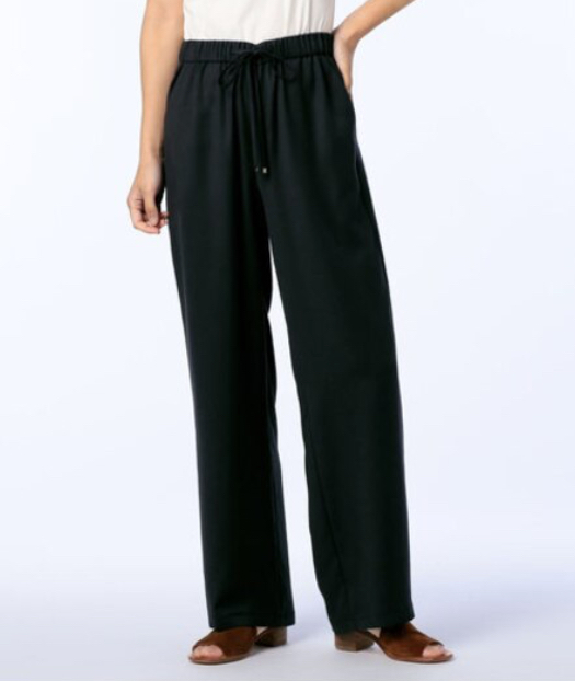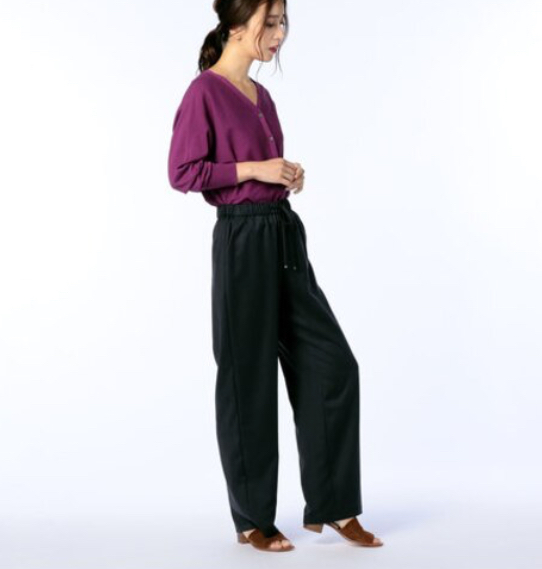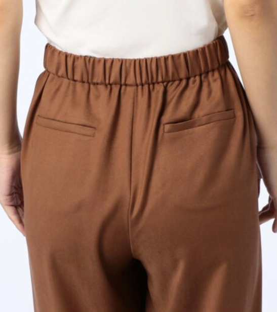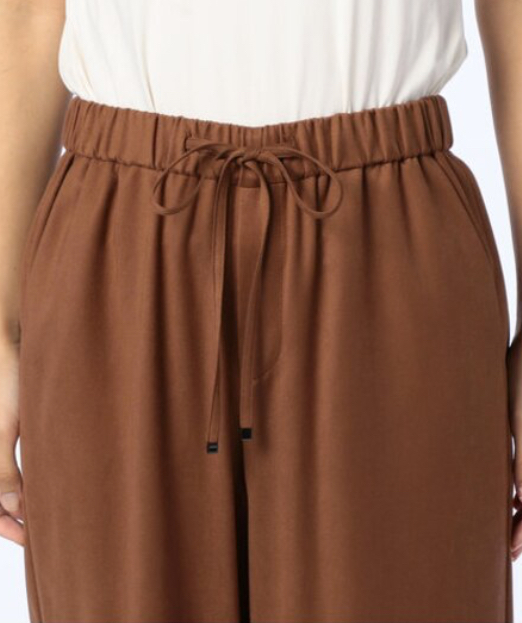 「伸縮性の良いゴムウエストのストレスフリーな穿き心地が魅力的なスエード風セミワイドパンツ。