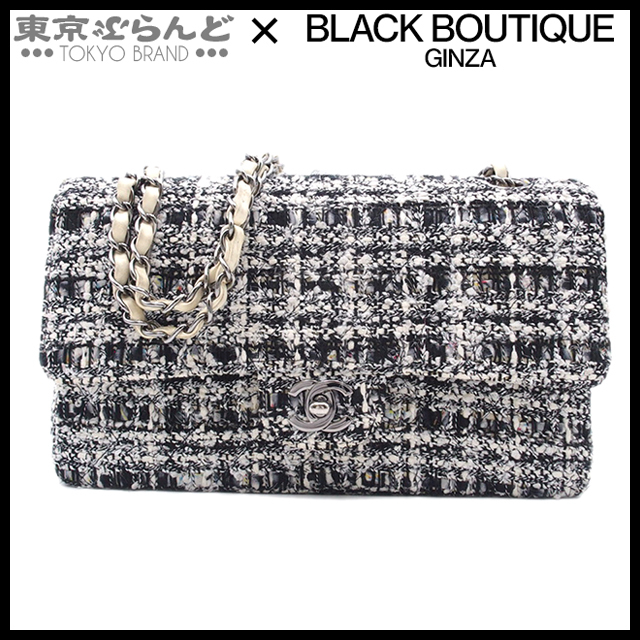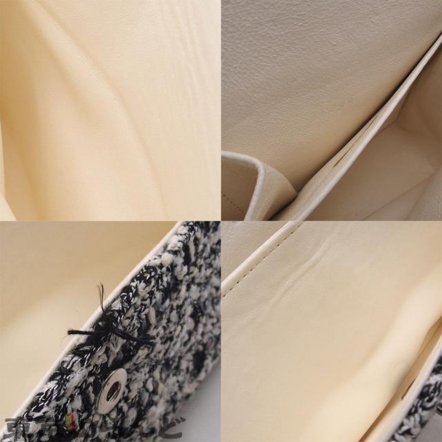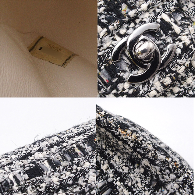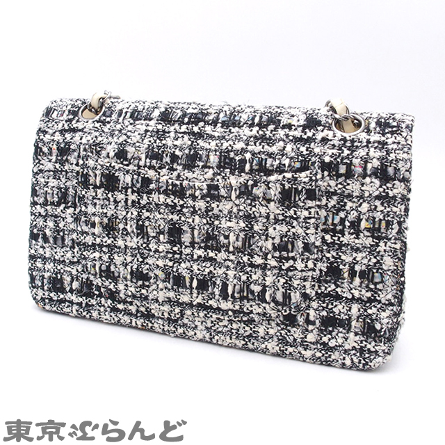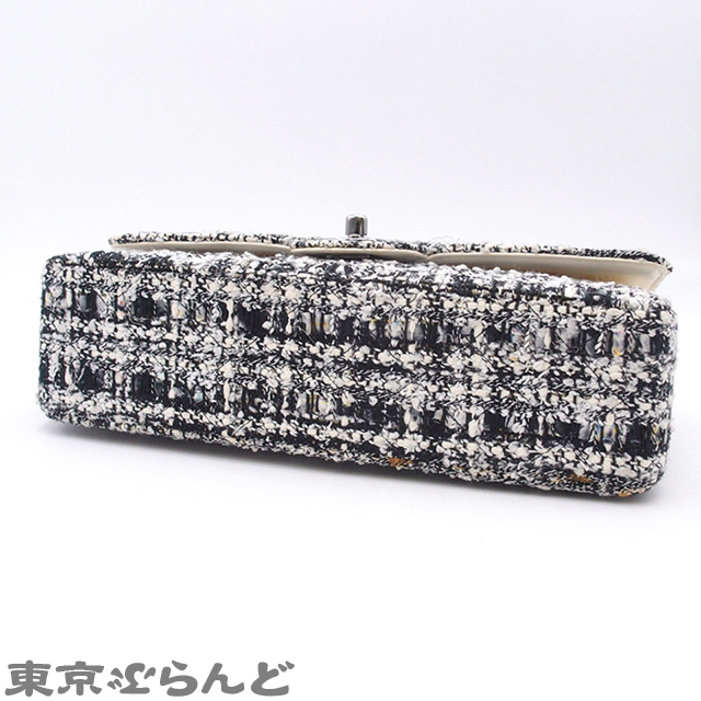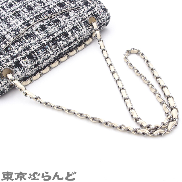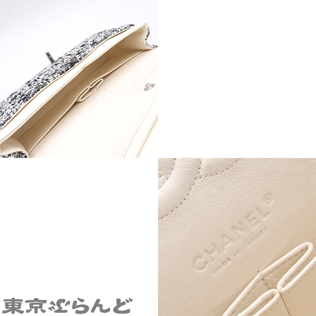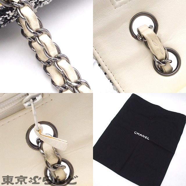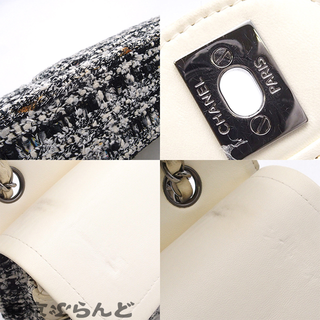 802143190 シャネル CHANEL マトラッセ Wフラップ Wチェーンショルダーバッグ 25cm 9番台 ホワイトxブラック シルバー金具 ツイード レザー