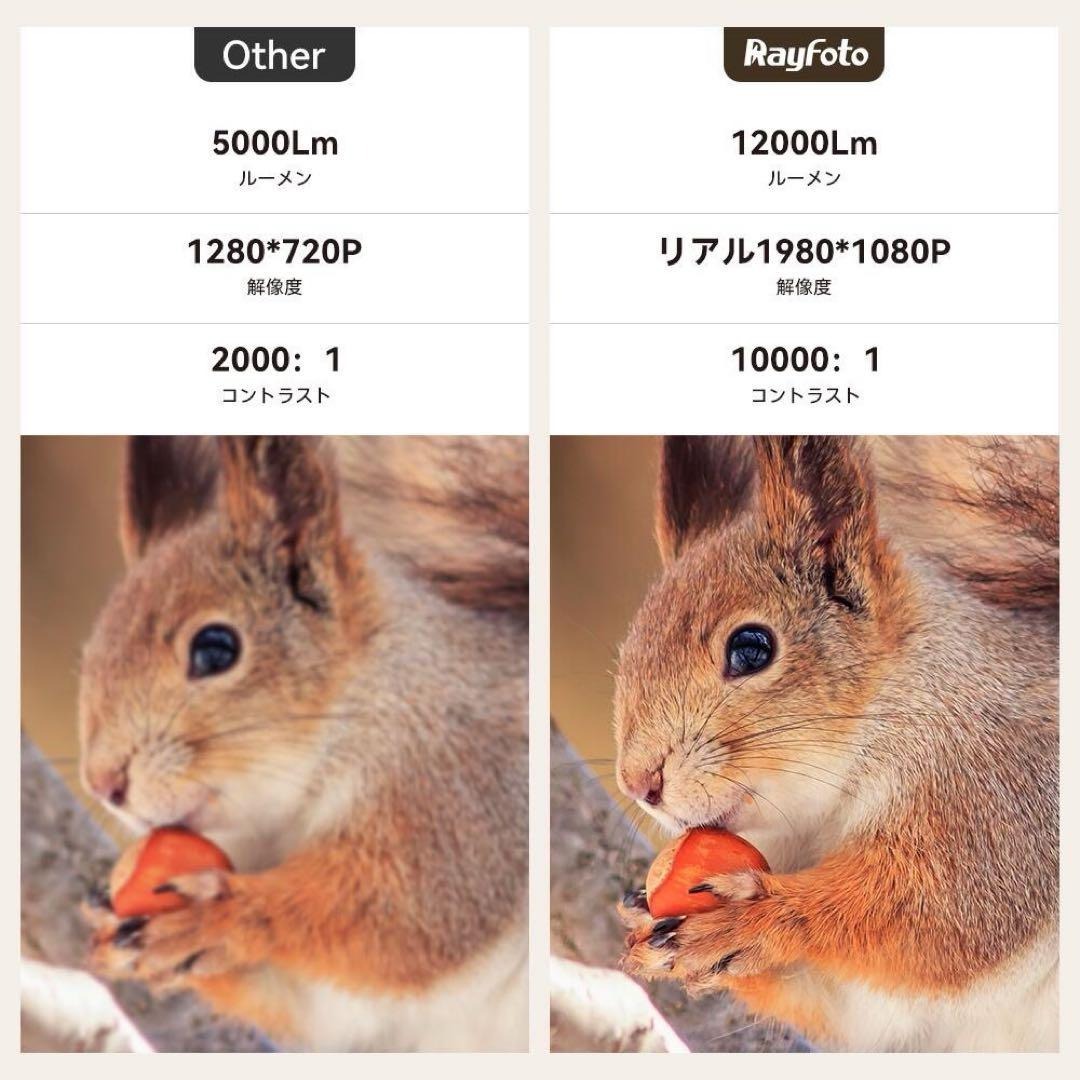 業界一流の進化版チップを本機に搭載、ネイティブ1080pの解像度は市販の720Pより2.5倍アップ!ネイティブ1080pは解像度も1920×1080のフルHDを実現、高画質圧縮されない綺麗のまま、スッキリ投影、小さい文字でも綺麗に!