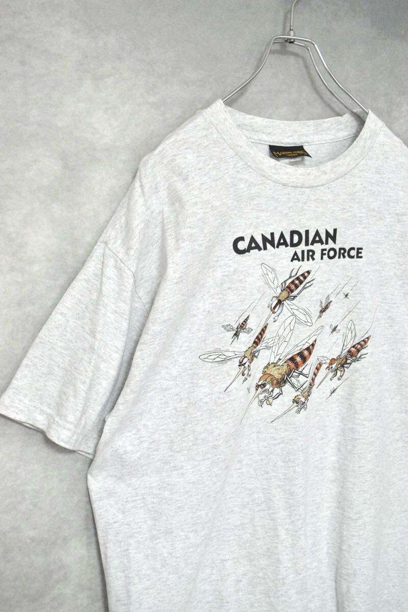 【 ミリタリー プリントT 】old プリント Tシャツ / size L / 90s 90年代 杢グレー カナディアンエアフォース ミリタリー 大戦