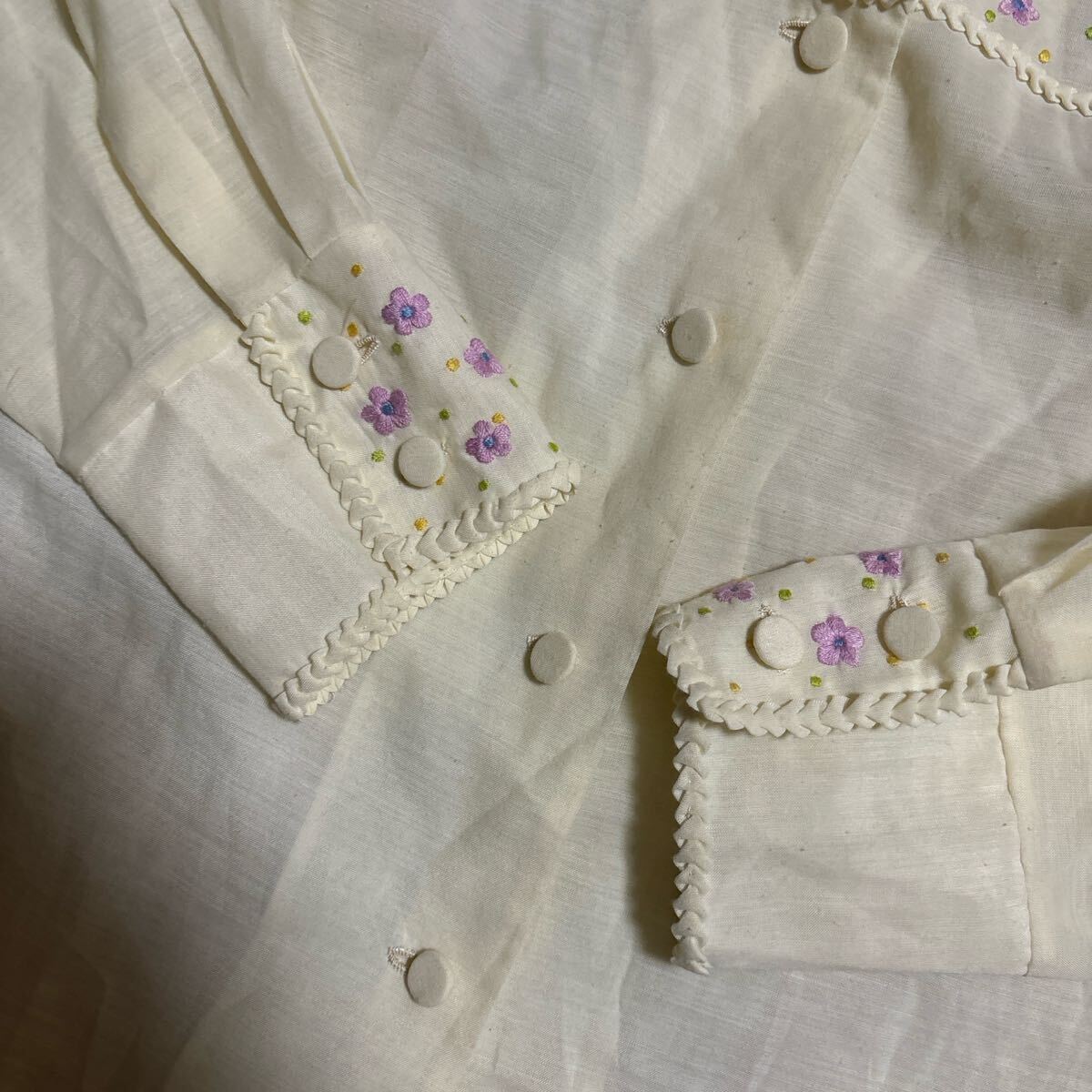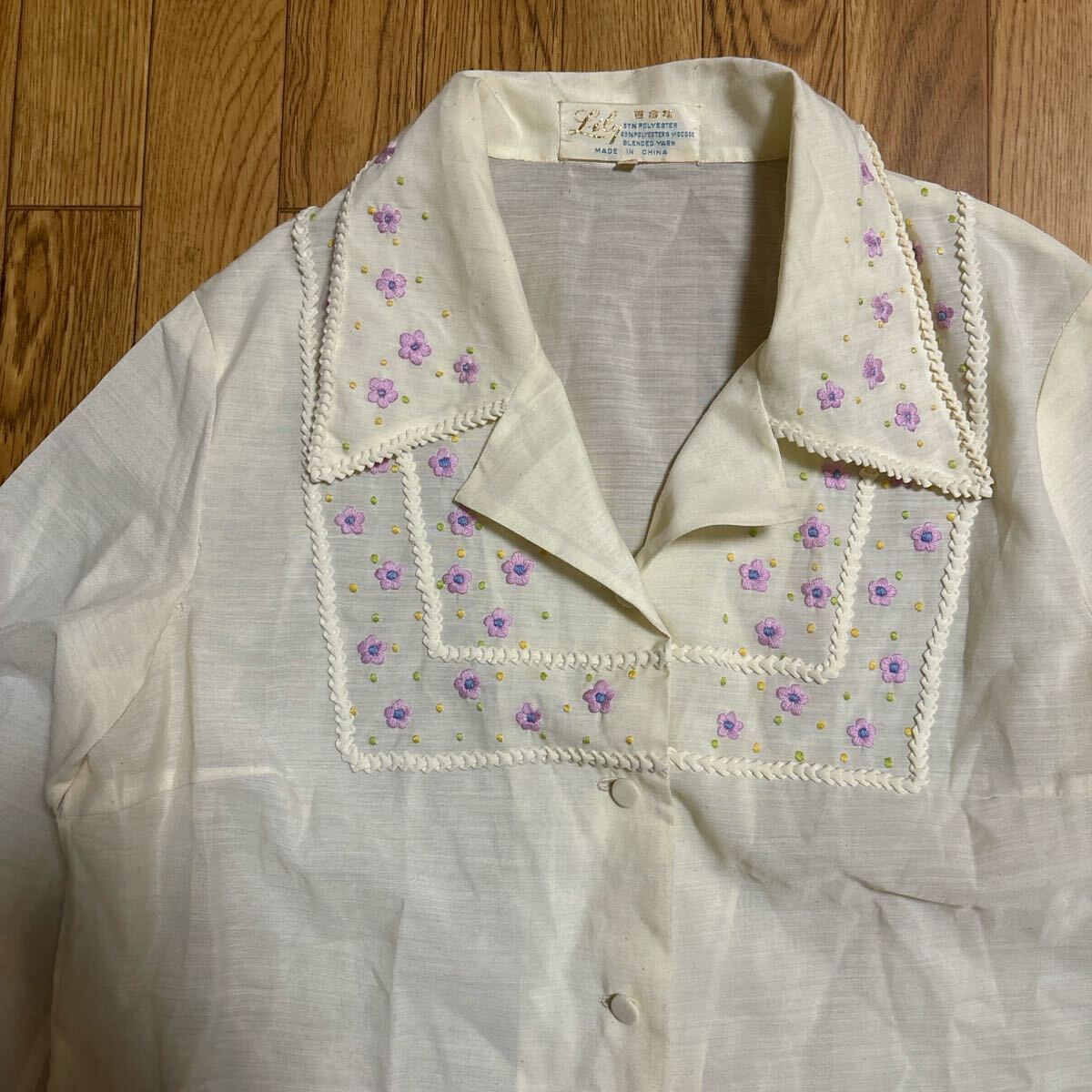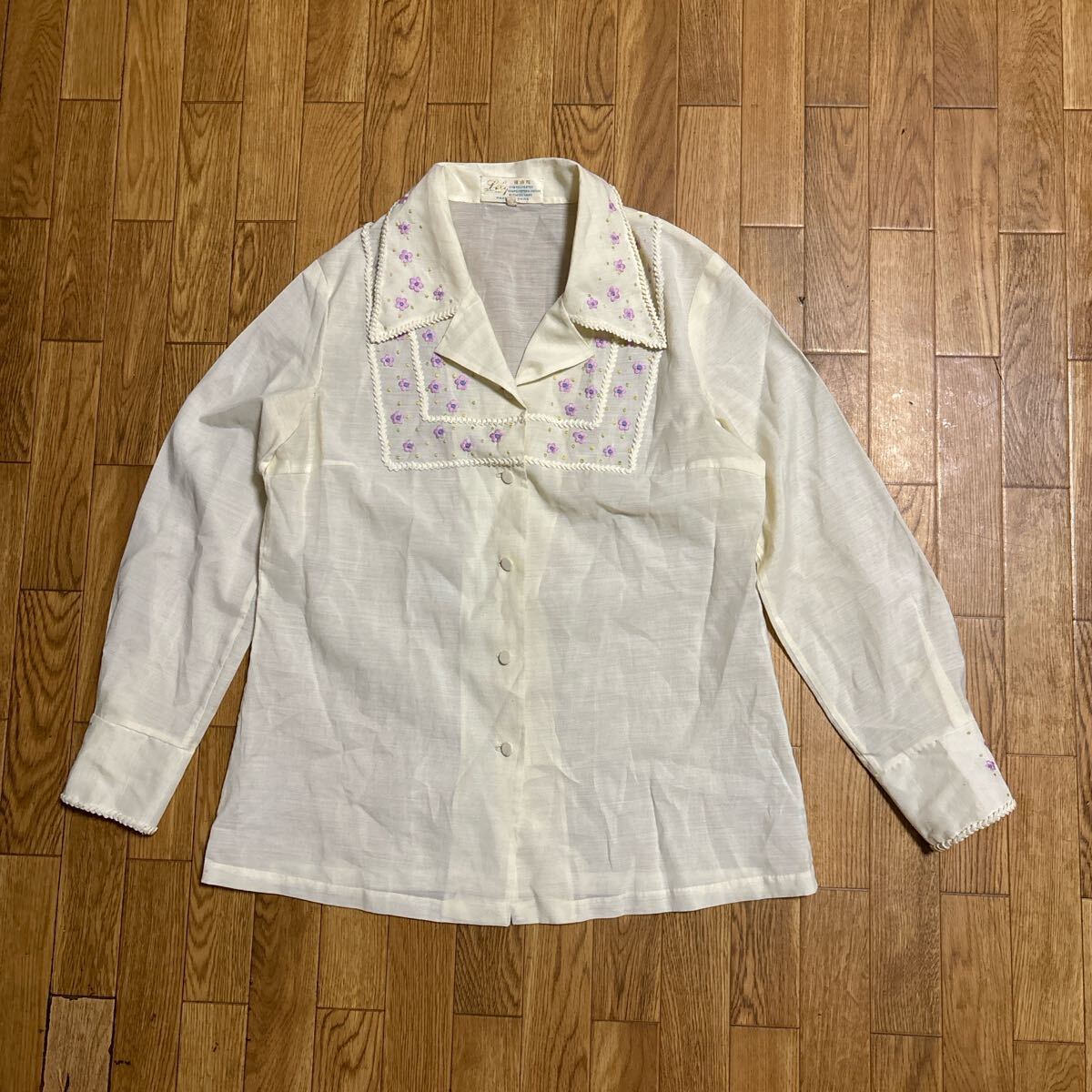 可愛らしい花の刺繍入りの薄手のシャツです。