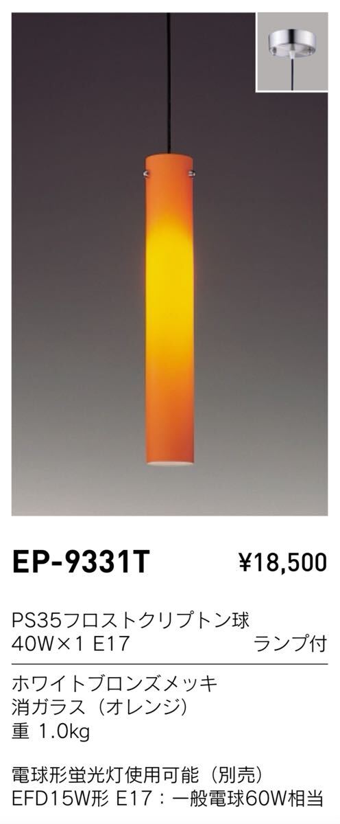 おしゃれなインテリアにぴったりの、遠藤照明 EP-9331T ガラス製ペンダントライトです。