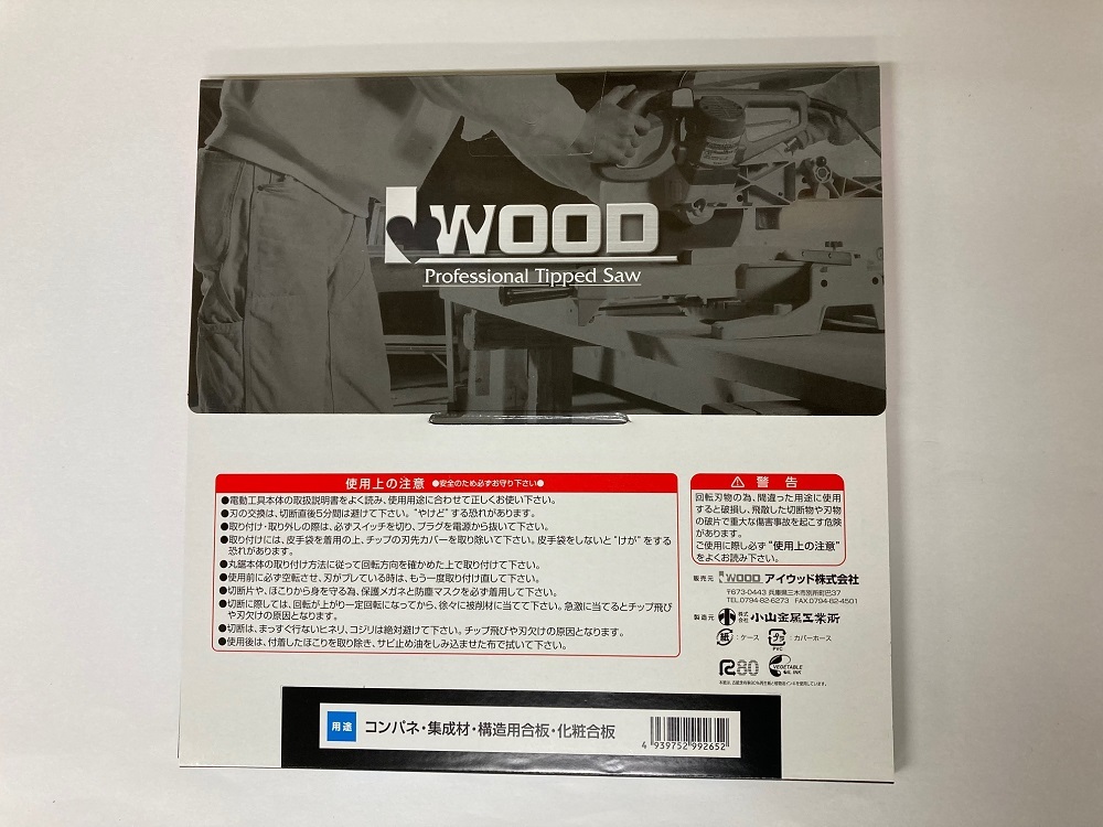 未使用#2524■ アイウッド 99265 コンパネ用 木工用チップソー 255x3.0x80P  内径25.4mm