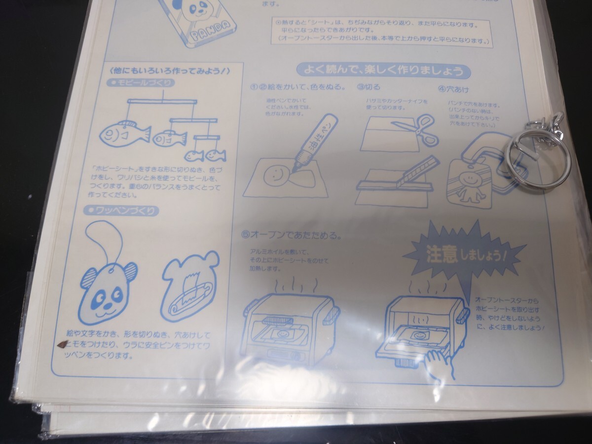 ●画像の物です。画像の様に1枚だけ上に欠けガあります。マジックなどで好きな絵を描き、ハサミで好きなサイズに切りオーブンで、焼くと熱く固まる物です。キーホルダーなどが作成出来ます。●ノークレーム、ノーサポートにて返品・交換などもご遠慮