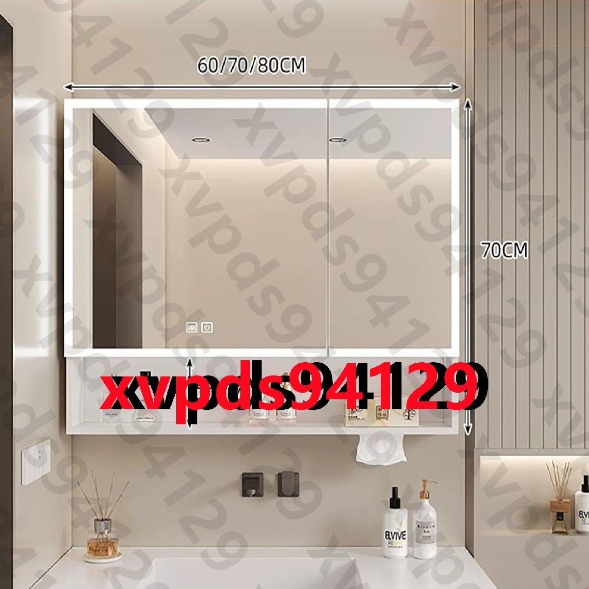 ミラーキャビネット 洗面台 鏡の曇り止め キャビネット おしゃれ 浴室用化粧鏡 浴室お風呂 鏡スマート調光機能付き 洗面化粧台 ミラーキャビネット LED照明ミラーキャビネット洗面所 浴室 ミラー 浴室鏡 収納付き 多層収納 防水 ファッション 省スペース 簡単収納(White 60*70*13cm)