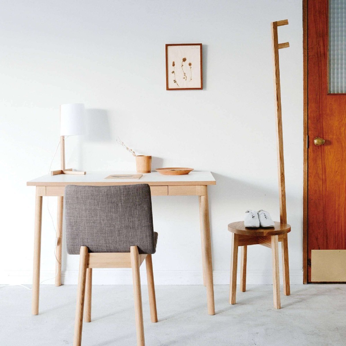 玄関で靴を履くときに腰掛ける、バッグを置く、バスルームではタオルを掛けて着替えを置いておく。様々なシーンに溶け込み、活躍します。