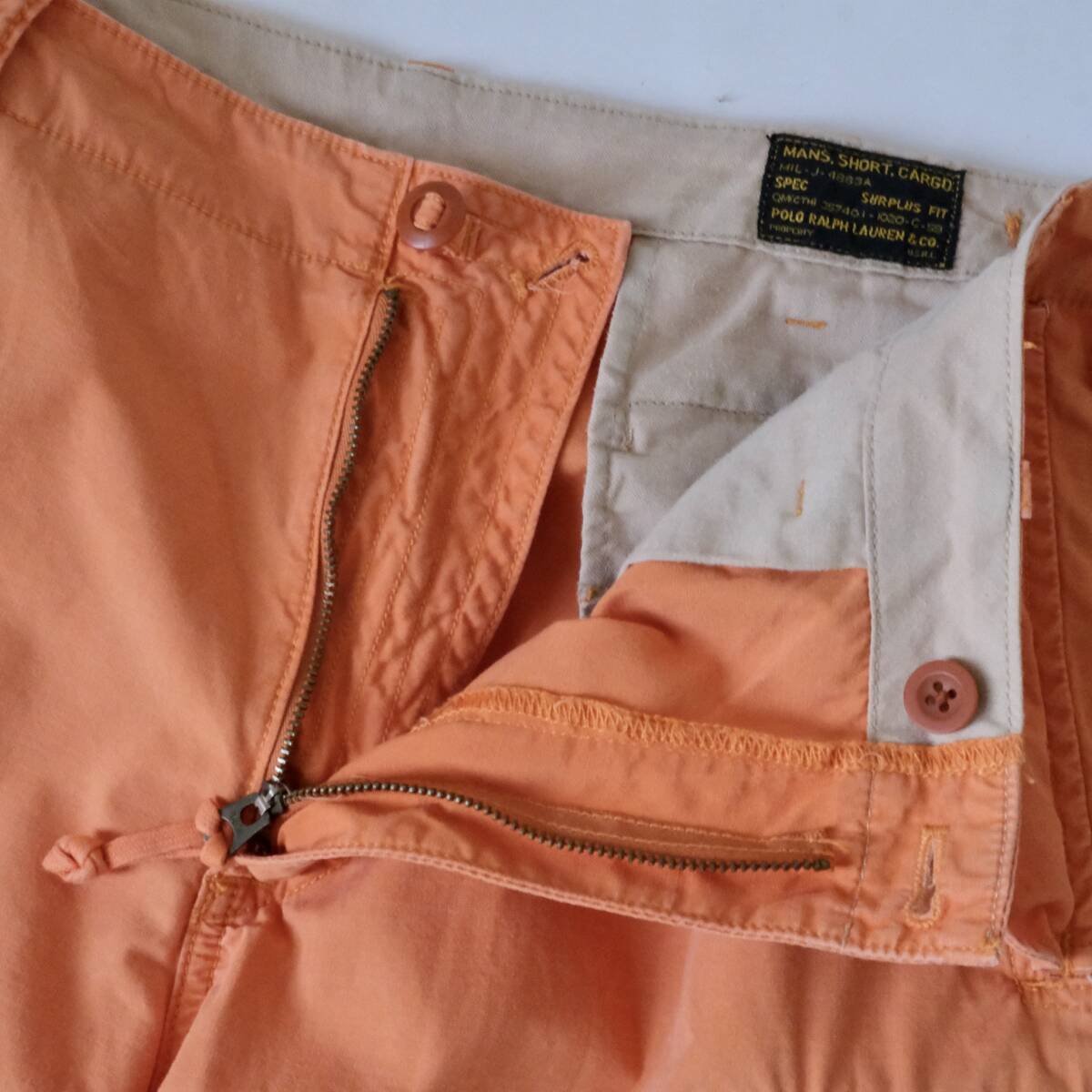 00s【 Polo Ralph Lauren 】ラルフローレン パラシュート カーゴ ショートパンツ / オレンジ / 34 / ハーフ ショーツ ミリタリー
