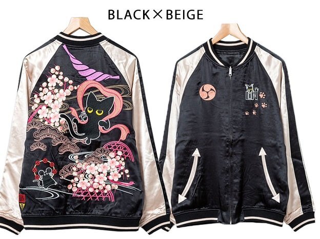 何でもあり、何でもやる新ブランド「LIN」から、ラミ&アール 風神雷神総刺繍スカジャン(AL-75618)のご紹介です。 黒猫のLamy(ラミ)とネズミのEarl(アール)。 ドンドコ♪ドンドコ♪ 今回はラミとアールが風神雷神になって登場しました! 桜舞う中駆け回るキュートで迫力のある神達二匹をお楽しみください。 また、こちらのスカジャンはリバーシブル仕様になっています。 合わせるアイテムによって表裏使い分けることの出来る、嬉しいアイテムです。 ボディーにはレーヨンサテンを使用し、ドレープや陰影がくっきりと現れています。 | ||||||||||||||||||||