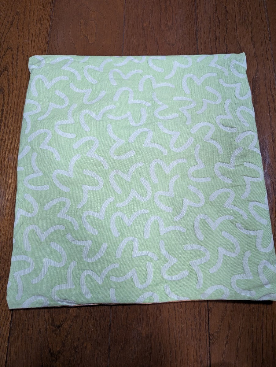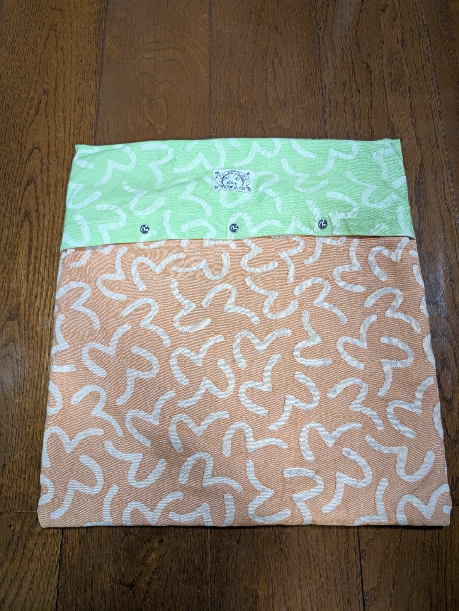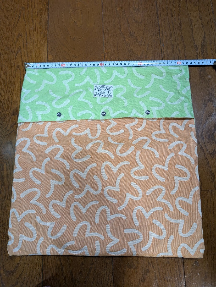EVISUのクッションカバーになります。こちらサンプル品で購入しました。黄緑とオレンジ色になります。数回使用し洗濯後保管してました。閉める部分はカモメボタン3カ所になります。一応中古品とご理解下さい。