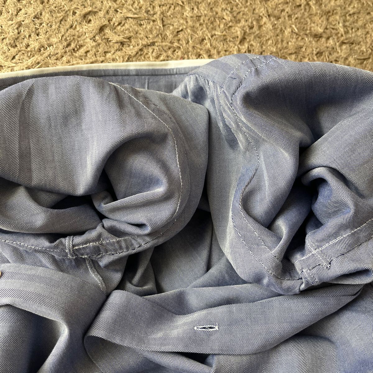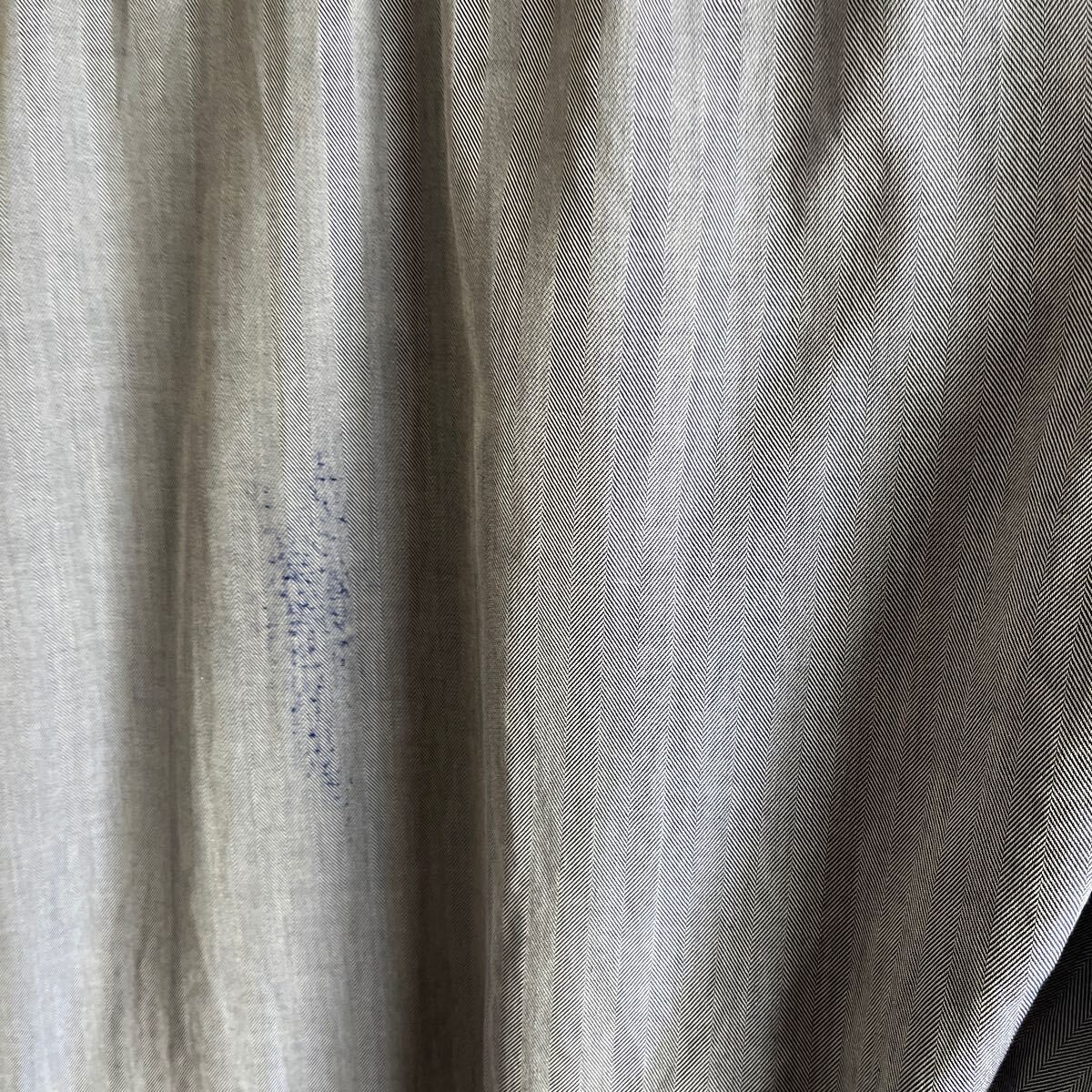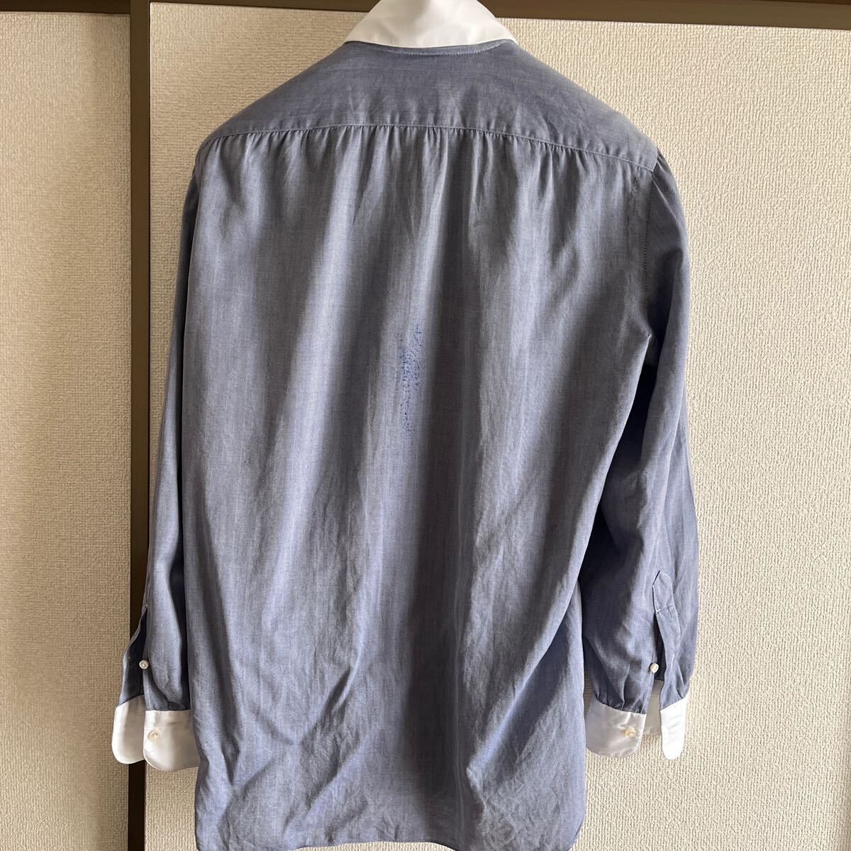 サスペンダーをしていたので、背中部分に毛羽立ちがあります。袖と襟にも汚れがあります。神経質な方は入札を控えて下さい。