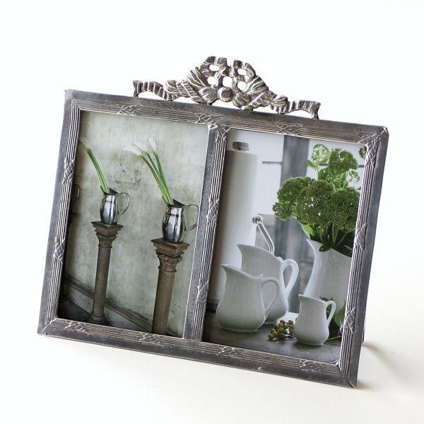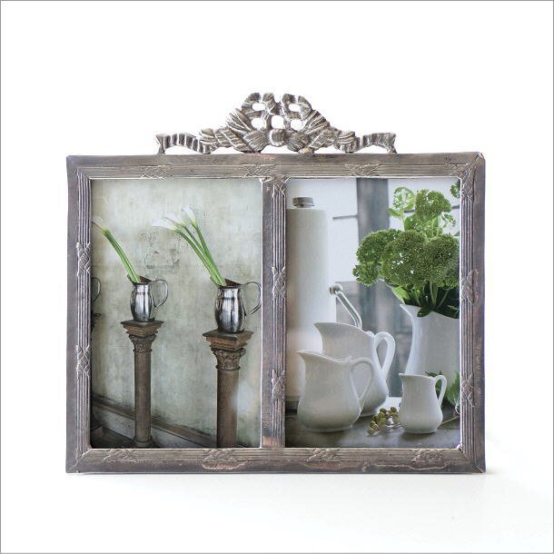 | アルミにシルバーコーティングをかけた 使いこなれた感のある アンティーク調のフォトフレームは トップのリボンモチーフがアクセント シャビーインテリアや ブロカントなお部屋作りで セピアやモノトーンの写真を入れて飾ると 雰囲気の出る写真立てになりそうです 商品名 : リボンフォトフレーム 2ウィンドウ 商品番号 : ebn7807 全体のサイズ(cm) : 幅16.7×奥行2×高さ15 写真窓のサイズ : 各)幅6.7×高さ10.7 収納部サイズ : 幅15.4×高さ11.7 材質 : アルミ ガラス 重量 : 310g 生産国 : インド ※写真は撮影用です ※写真挿入口の開閉が固い場合があります ※縦置きのみ対応 ※ガラスやフレームの小さな擦り傷等はご容赦下さい ※海外製品の為、表から見えないガラスの切り口の欠け等はご容赦ください ※ガラスの切り口やフレームがアバウトで鋭利な箇所がございます。お取り扱い時はご注意ください ※塗装ムラや傷等でアンティークな風合いを表現した商品です ※ディスプレイによる色の違いはご了承下さい |